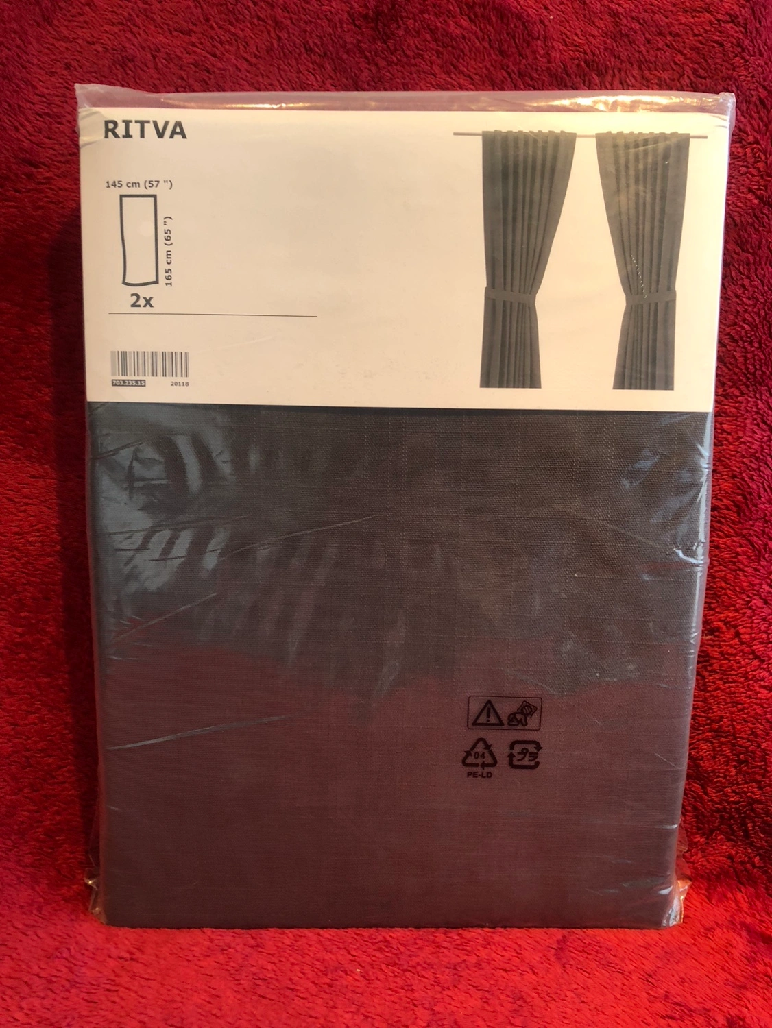 IKEA – 2 of 2 Sets - RITVA CURTAINS. 2 Panels per Set with tie-backs. Charcoal Grey, 145 x 165 cm (57'x 65"inches )
