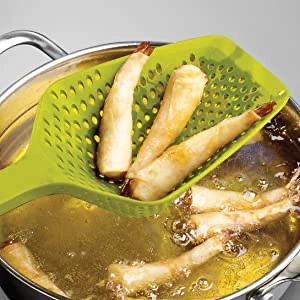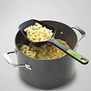 - Scoop and drain straight from a hot pan; features an integrated scraping edge for roasting pans