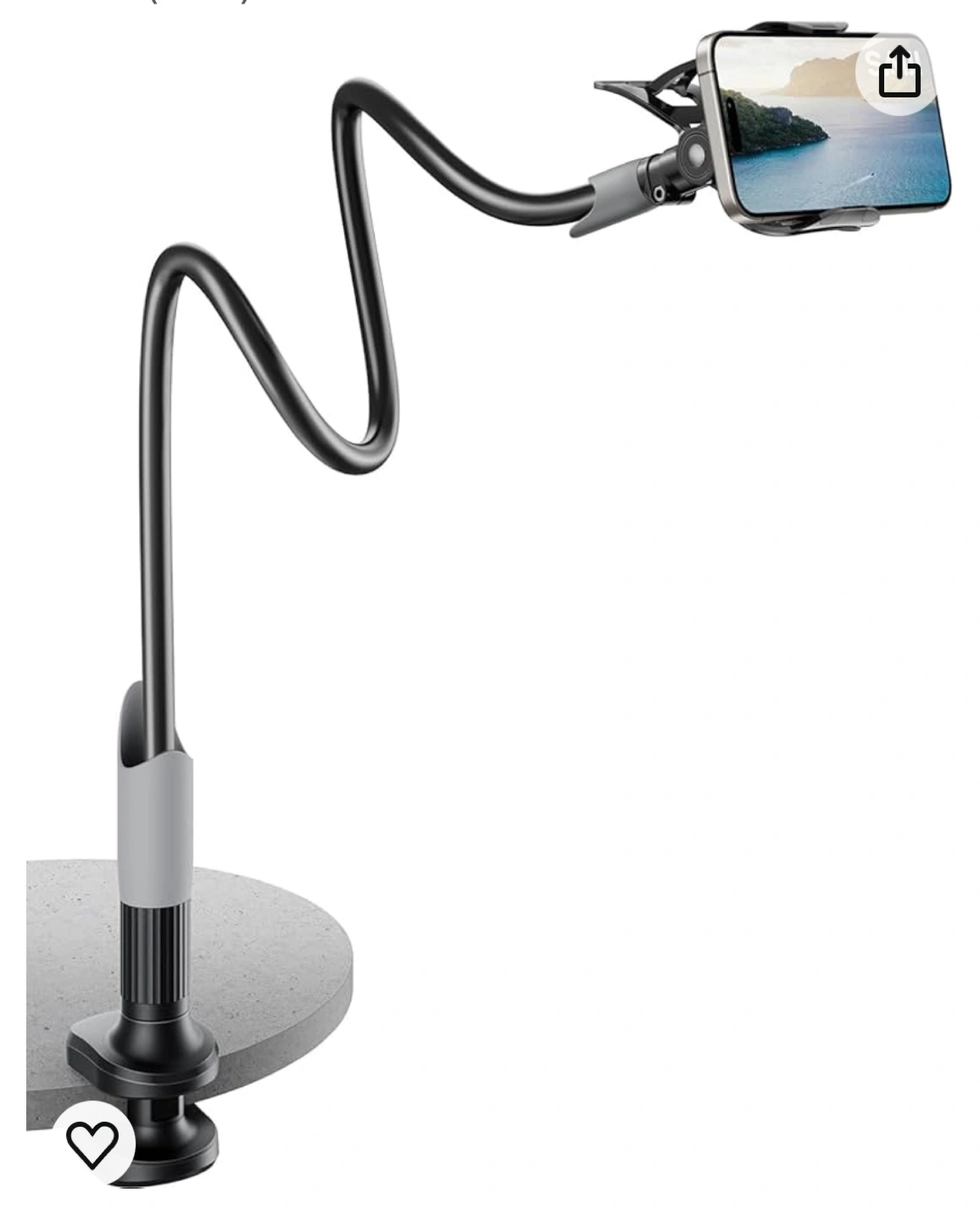 Opened and never used cell phone stand / mount / holder. Is 85 cm long, compatible with 4-6.3”, and max load of 300 g. See images for paper manual.