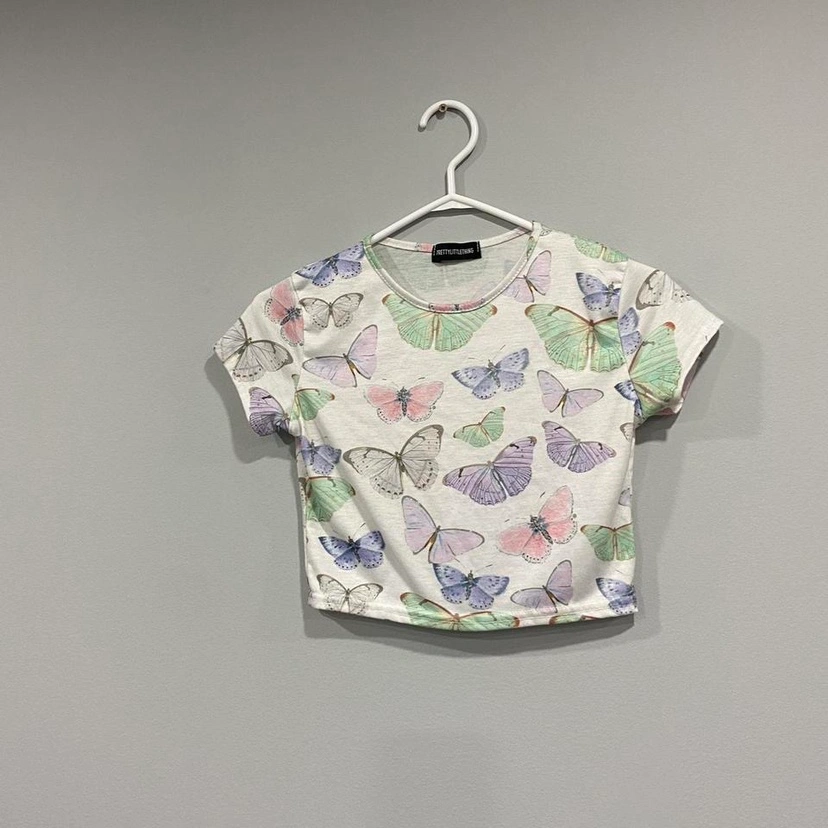 Cropped prettylittlething butterfly tee. Good used condition. Size small i think. There is no size tag. Feel free to ask for measurements.