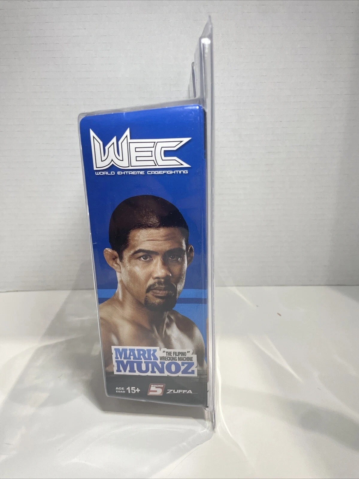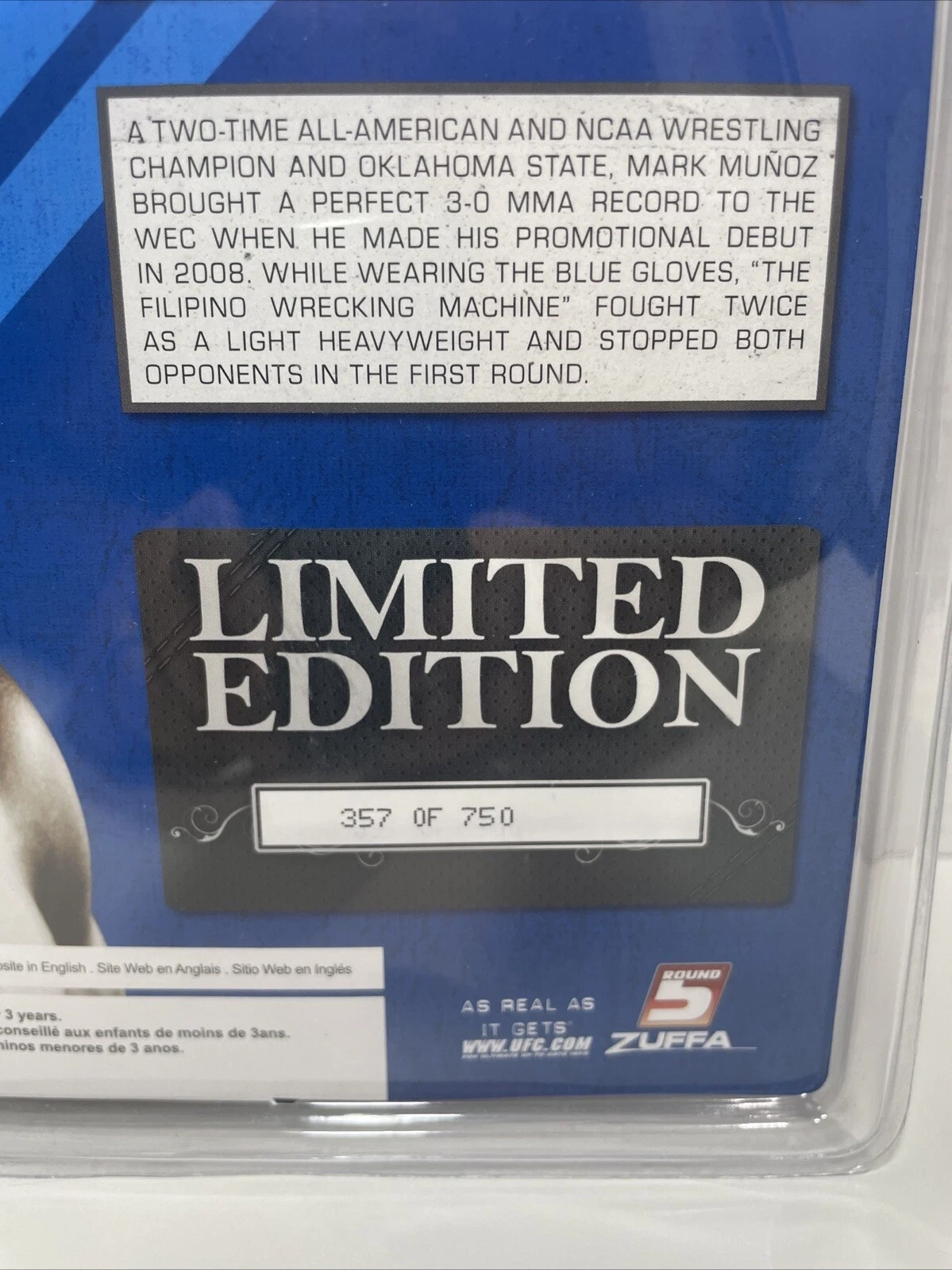 Limited Edition Mark Munoz action figure from Round 5, part of the UFC WEC series. This is figure number 357 out of 750. It's a 1:12 scale figure, about 6 inches tall, made of ABS plastic. The packaging is original and unopened. This item was manufactured in 2011.