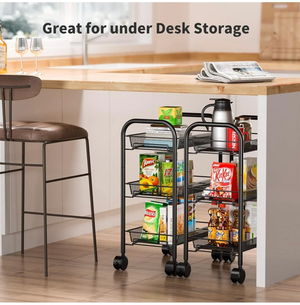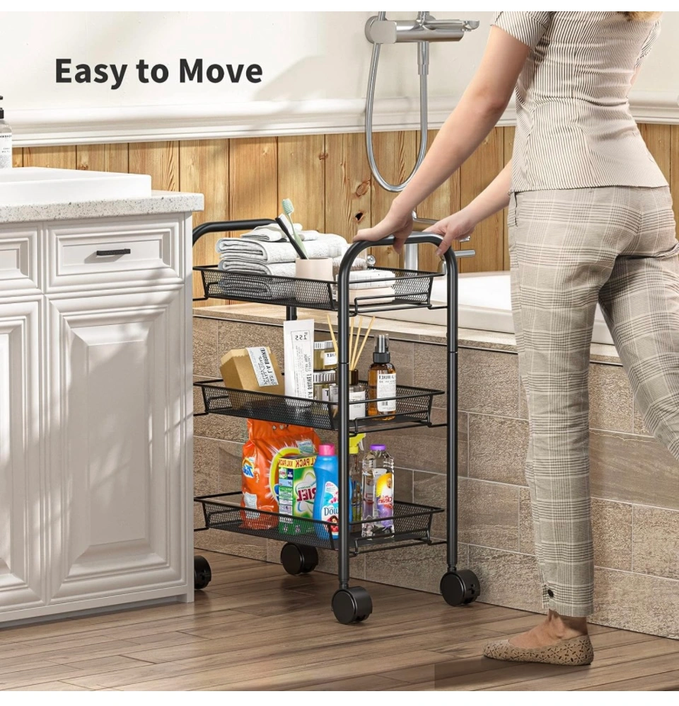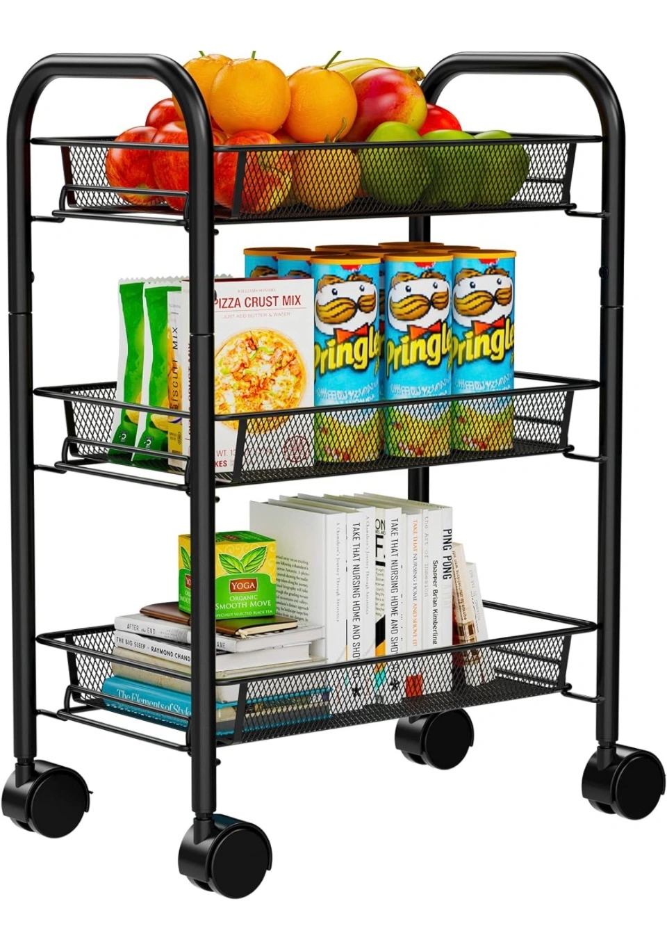 3-Tier Mesh Wire Rolling Utility Cart Multifunction Metal Organization with Lockable Wheels for Home, Office, Kitchen, Bathroom, Bedroom PIUC01