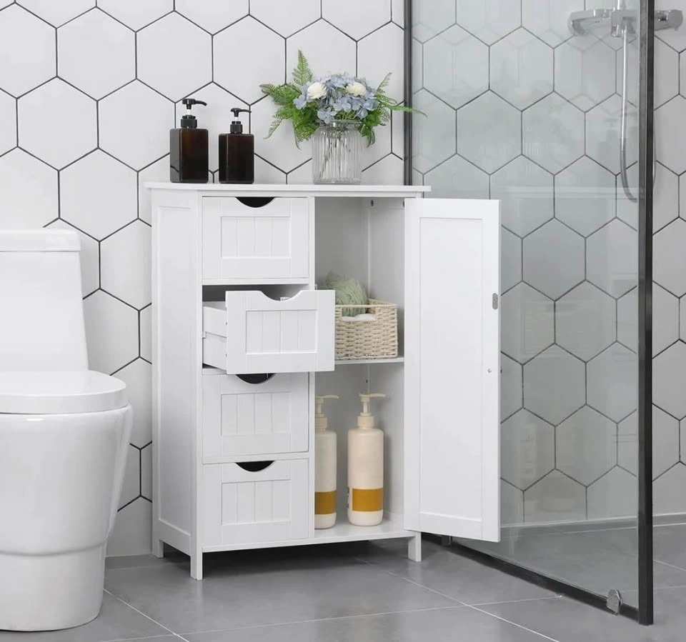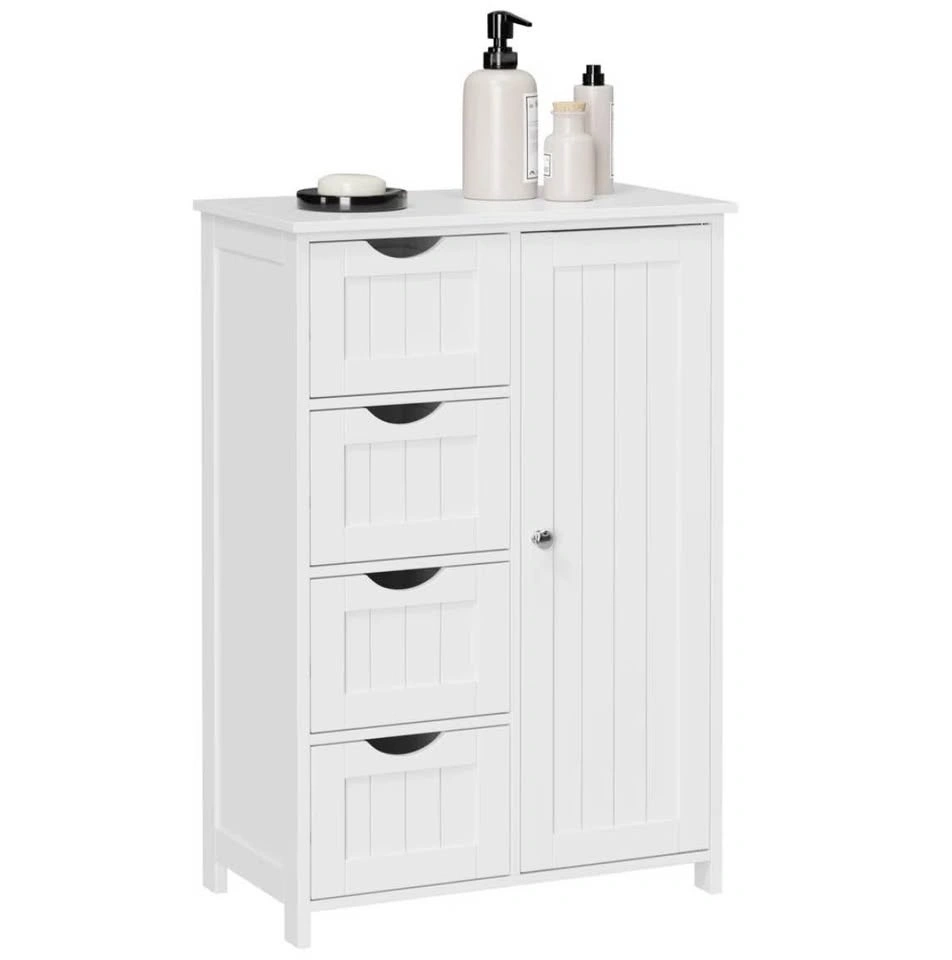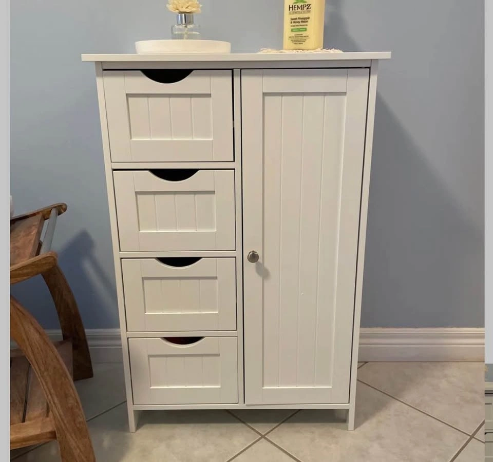 Manhattan cabinet, white storage cabinet, floor cabinet, bathroom storage, 4 drawer cabinet, adjustable shelf, freestanding cabinet, home organization, new open box.