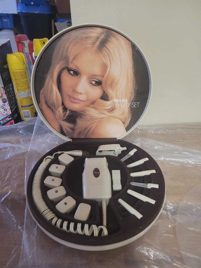 Vintage Phillips Beauty Set Lady Shaver Accessories Nail Face Manicure set in Round Box Design. Works on 120 Or 240 watts. Asking $30 pick up on beaverbrook lane Kanata thank you