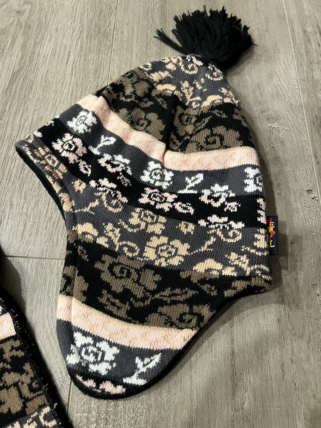 This set includes a Icelandic patterned knitted hat with ear flaps and a matching scarf. The hat's lining is soft fleece for extra warmth. It's a great combo to keep you cozy during colder weather!