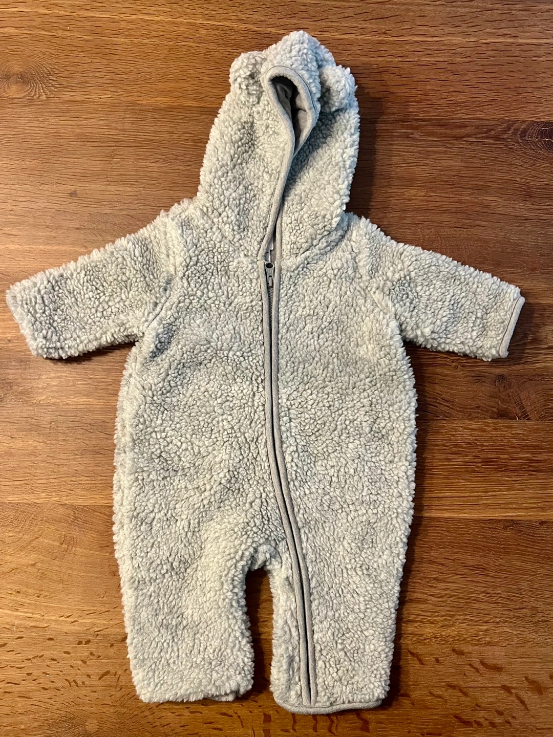 This adorable GAP baby sherpa onesie is perfect for keeping your little one warm and cozy! It features a hood with cute bear ears and a full zip closure for easy dressing. It's in great condition and ready for a new home. Size 0-3 months.