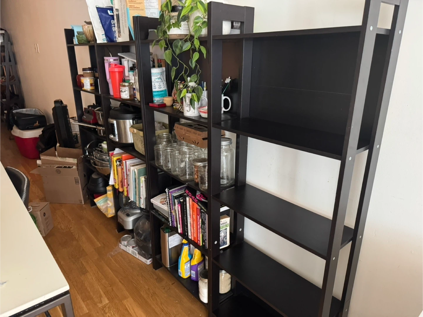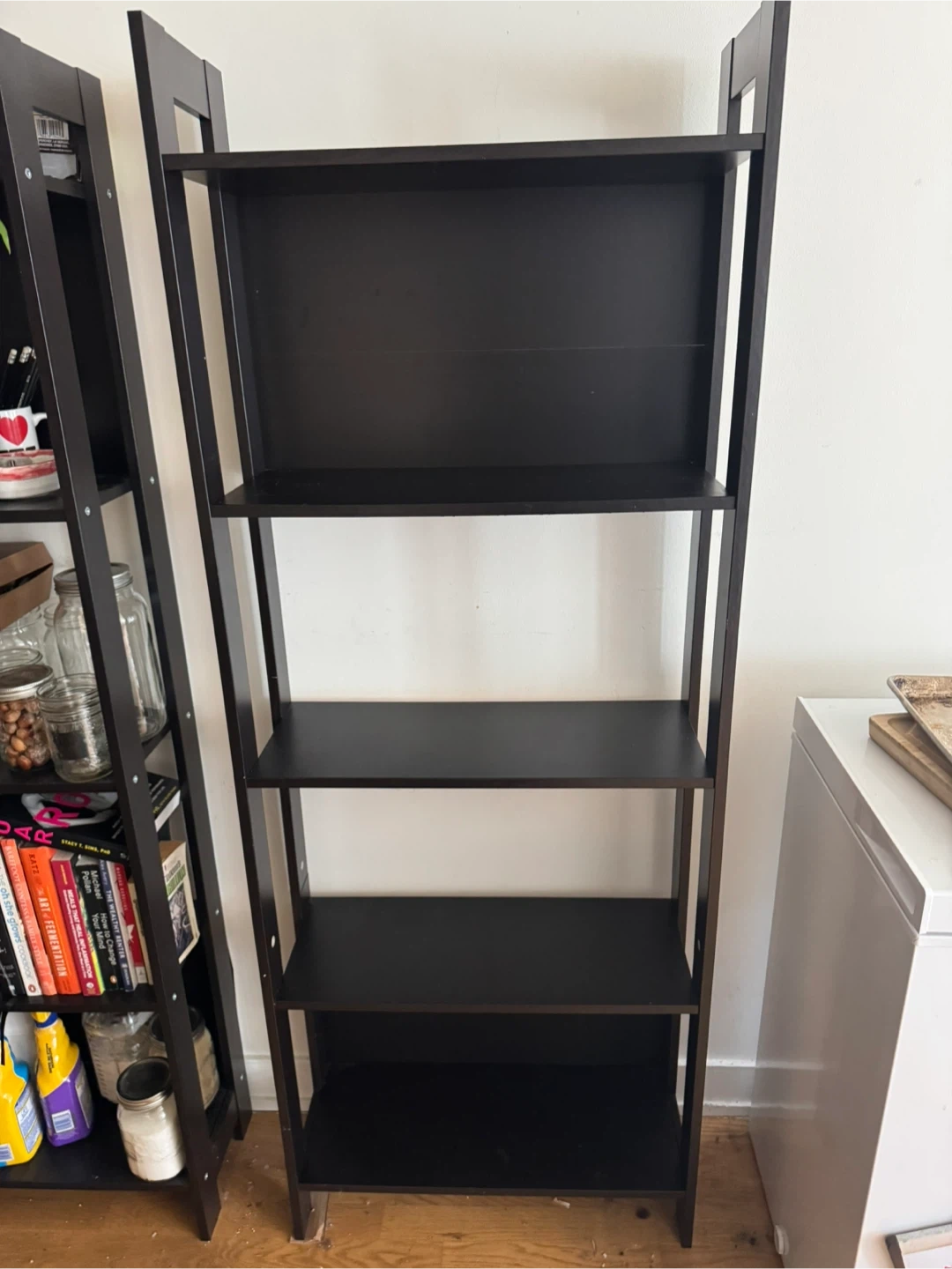 Simple, modern black/brown finish. Great for books, kitchen storage, plants, or office use.