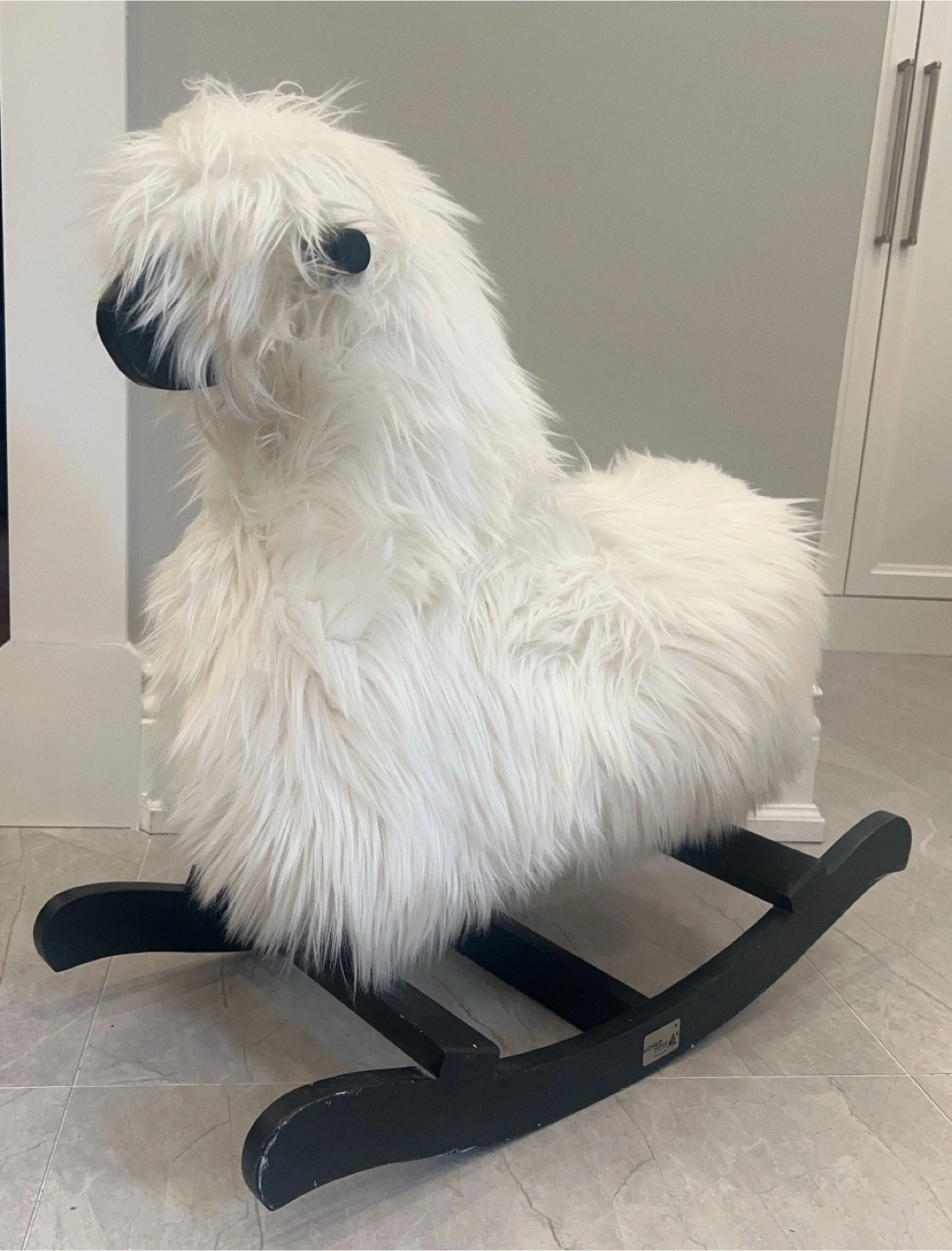 Used kid’s ride-on toy. The rocking sheep is from Belgium’s Childhome who specialize in handcrafted, sustainable children’s toys and furniture. The design is both functional and aesthetically pleasing. Features a black wooden base. The rocking sheep is in decent condition - there are some scuffs on the wood base from use.