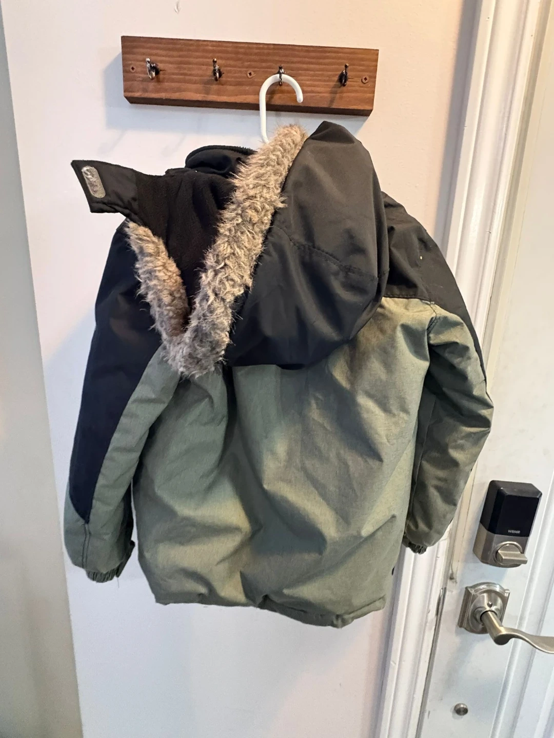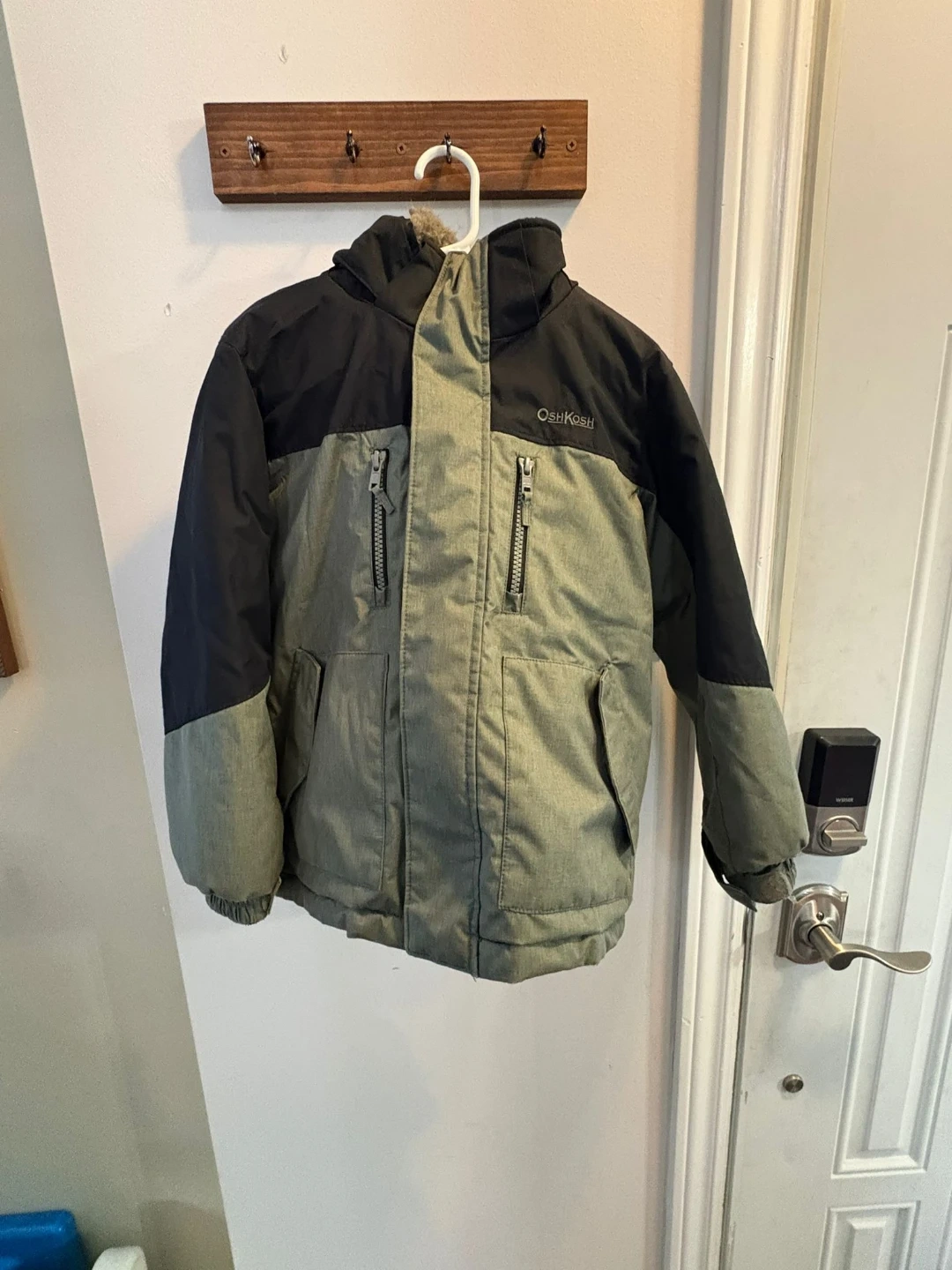 This OshKosh B'gosh winter jacket is made for kids size 6. It features a durable outer shell with a warm, fuzzy lining inside. Multiple zippered pockets are included for storage. It's built tough for active youngsters! Pick up Mississauga Area or Brampton Area