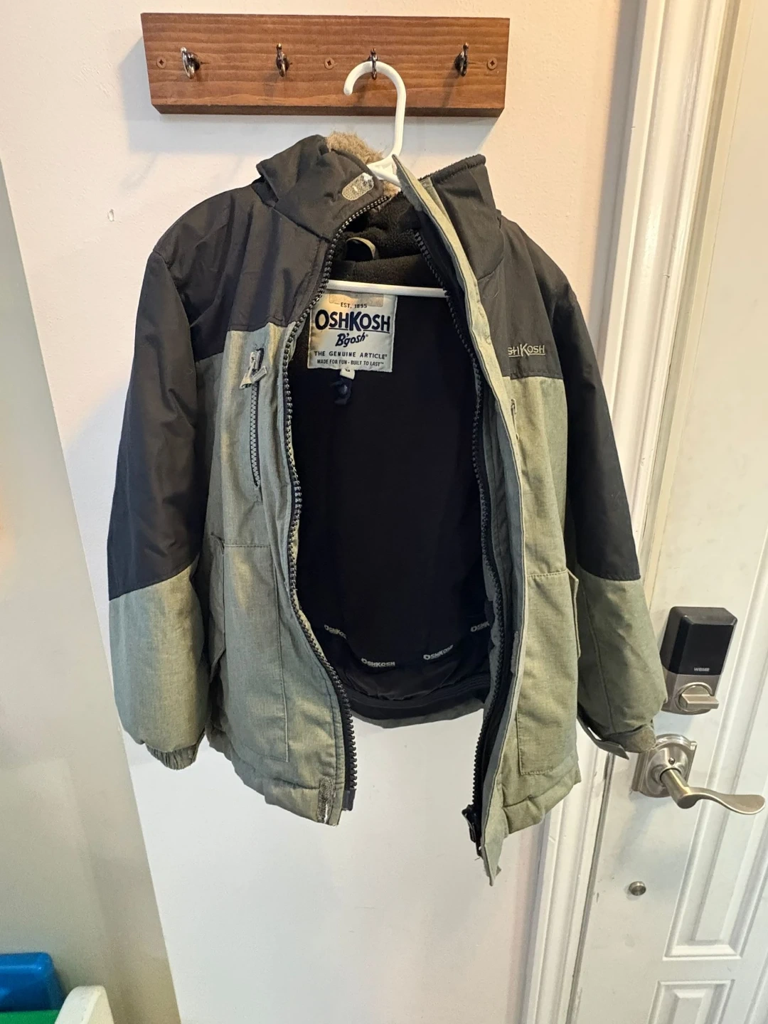 This OshKosh B'gosh winter jacket is made for kids size 6. It features a durable outer shell with a warm, fuzzy lining inside. Multiple zippered pockets are included for storage. It's built tough for active youngsters! Pick up Mississauga Area or Brampton Area