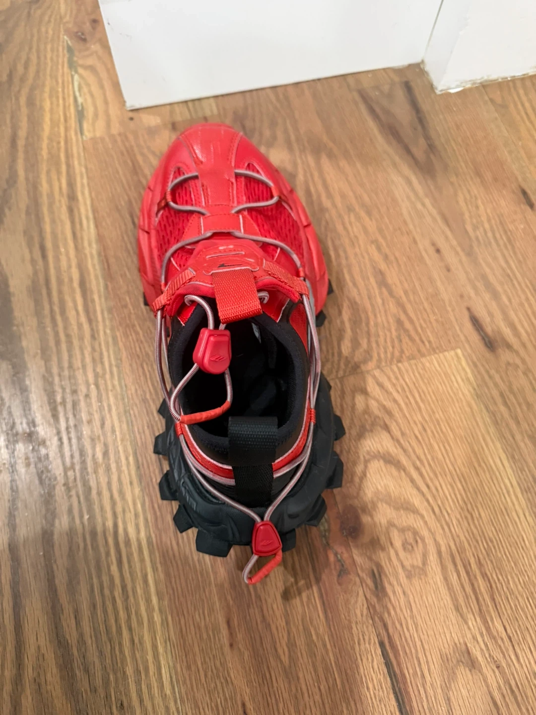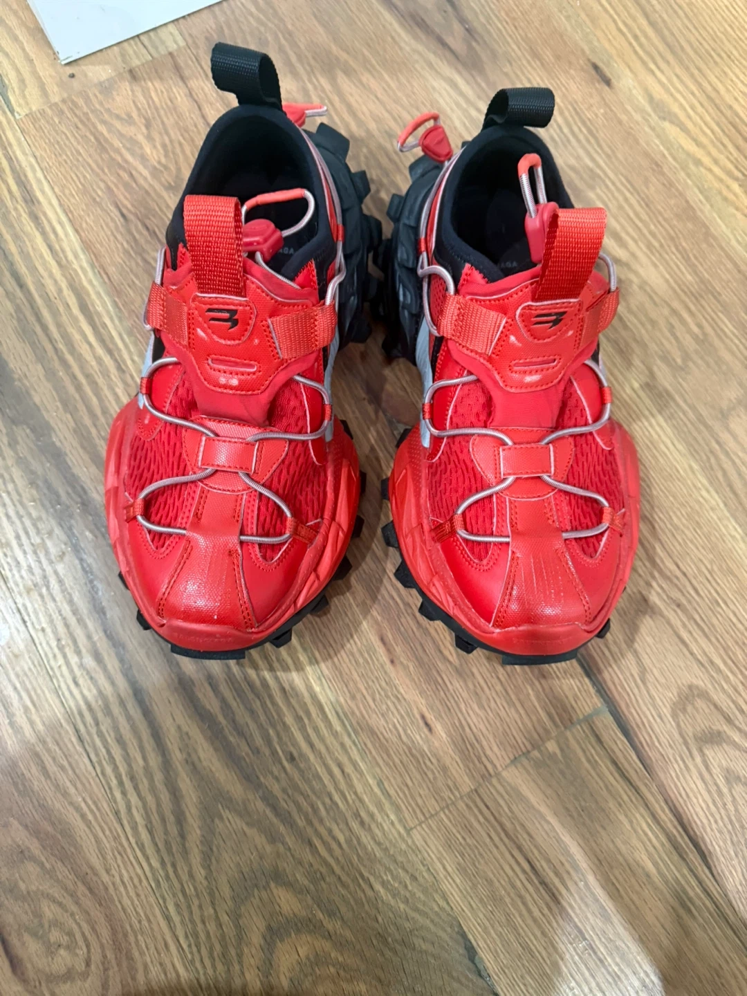 Buy & SellBalenciaga Red Track SneakersBalenciaga Red Track Sneakers$141Balenciaga red Track sneakers. These shoes feature a striking red design with a rugged black sole. Size EUR 38, USA 8. Fits 39 European size.ConditionNewSize39BrandBalenciaga WHERE TO MEETCheck LocationView MapSELLERverifiedValentinaTottenville600 reviews0 chats·0 favorites·19 viewsSEND CHAT TO SELLERHi Valentina! I’m interested in your listing.Hi Valentina! I’m interested in your listing.Get the Karrot app to chatSign In to chat