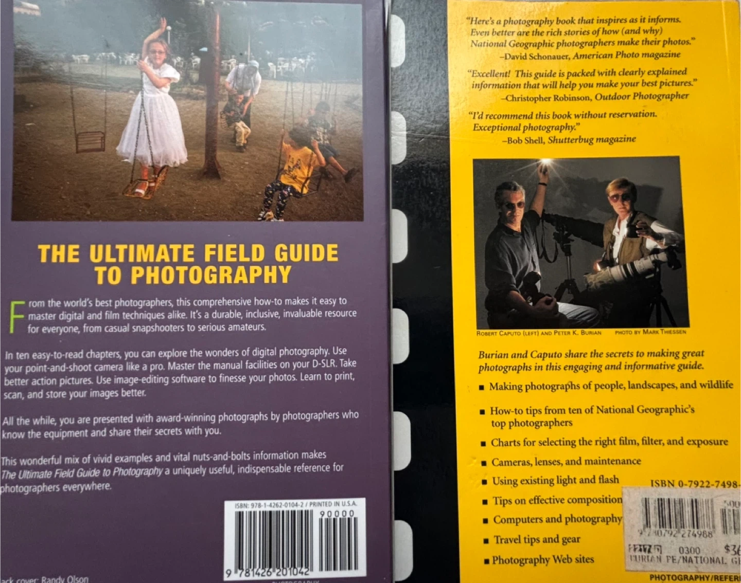 For sale are two comprehensive guides from National Geographic. Make it easy to master digital and film photography techniques. Learn to use your camera like a pro, edit photos, and print, scan, or store your images more effectively. It's packed with insights from award-winning photographers.