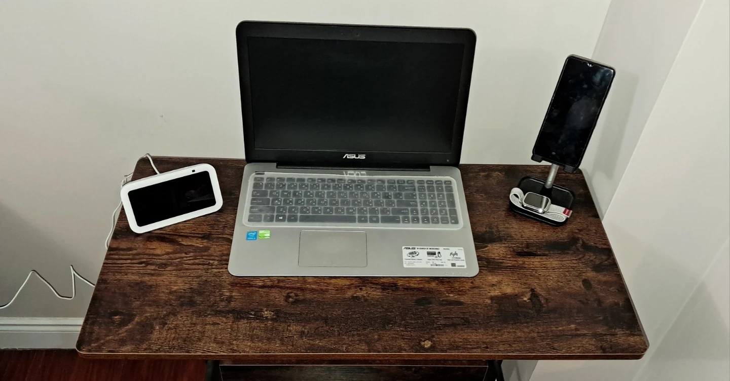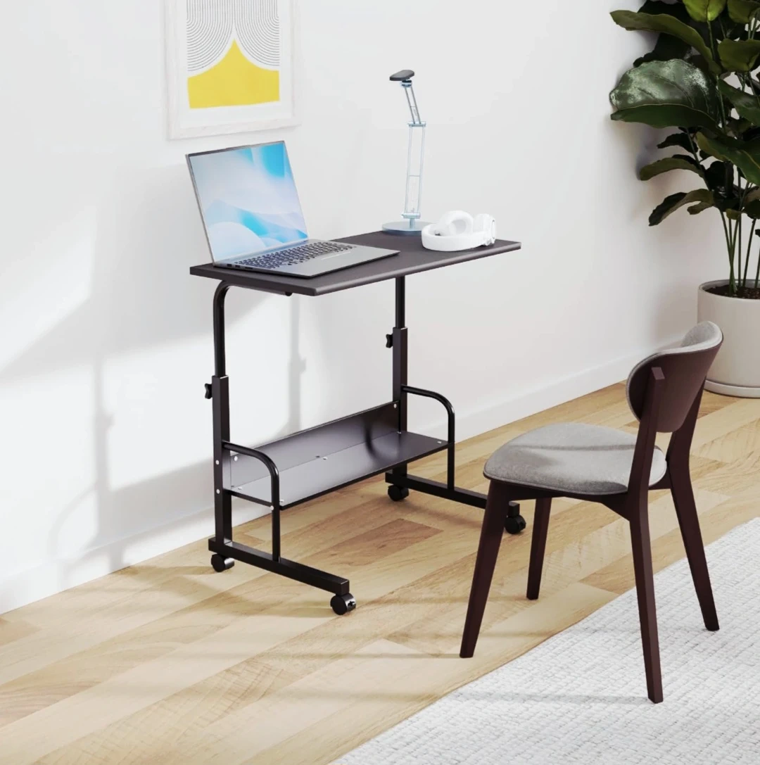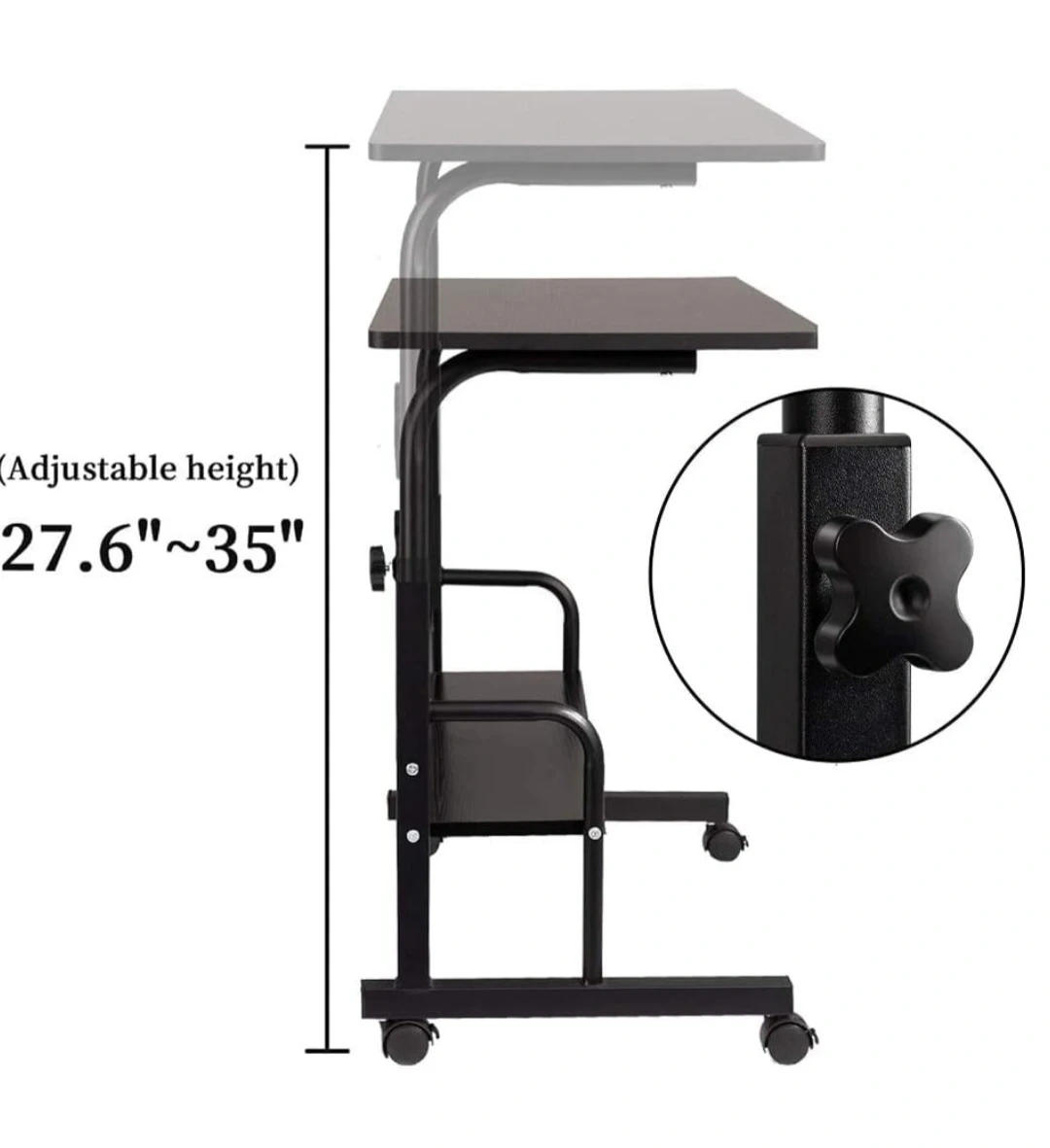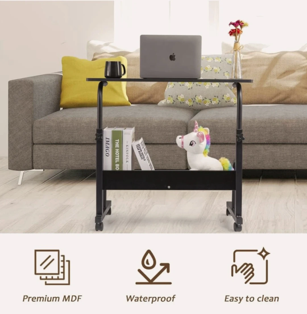 Adjustable Height Bedside Laptop Table with Storage Rack