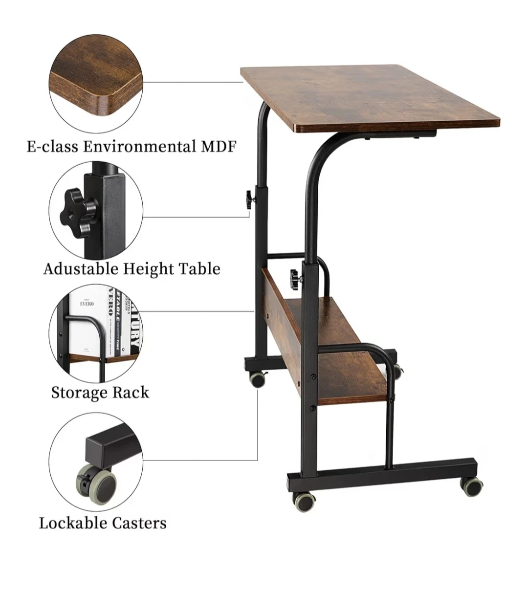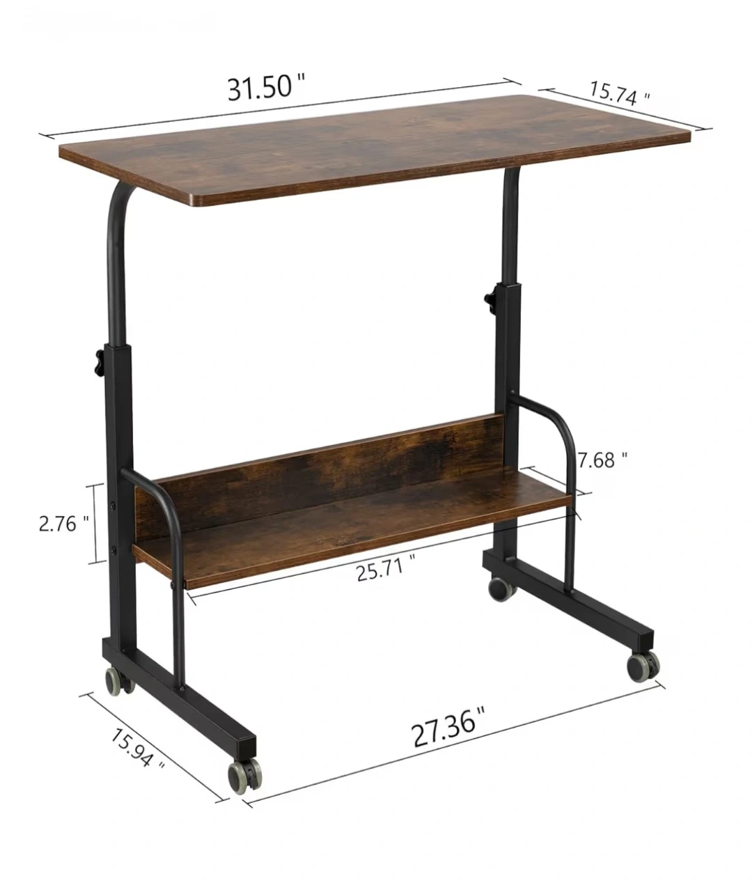 Mobile Side Table Mobile Laptop Desk Cart Tray Table Adjustable Sofa Side Bed Table (31.50", Rustic Brown) Portable Desk with Wheels Student Laptop Desk...