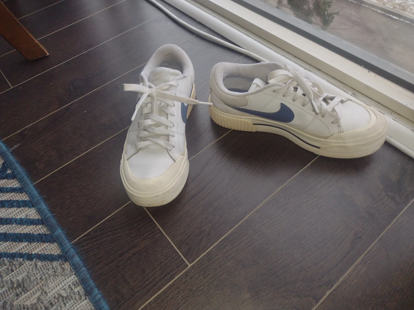 Selling a pair of Nike Court Legacy Lift shoes in white! These are in good condition and ready for a new owner. They feature the classic Nike swoosh in a striking colour of navy blue. Perfect for everyday wear or for short walks!
