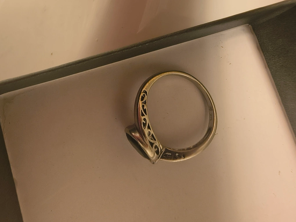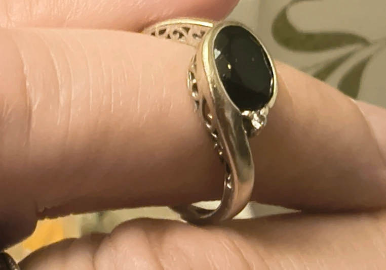 Selling a 14K gold ring featuring a striking black stone. It's a beautiful piece that adds a touch of elegance to any outfit. The ring is in great condition and ready to be worn and enjoyed!it has a Celtic design and fits 7-8 finger serious buyers only Paid 600.00