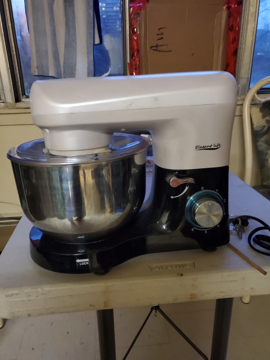 Selling an Elegant Life stand mixer in good condition! It features a stainless steel bowl and a black and white design. Perfect for all your baking needs