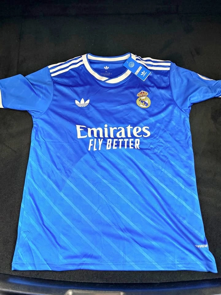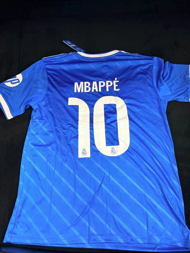 Kylian Mbappé #10 Real Madrid fan-style jersey in blue. Clean modern design with stitched club crest and bold name/number on the back. Details: Name: Mbappé, Number: 10, Team-style: Real Madrid, fan-style jersey, Lightweight, breathable material, Clean stitching and printing, Comfortable fit. Condition: Brand new, Never worn, Tags attached. Great option for Real Madrid or Mbappé fans looking for a sharp jersey at an affordable price.