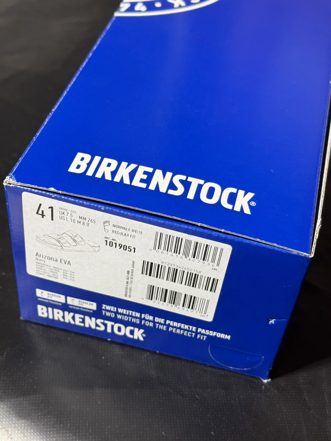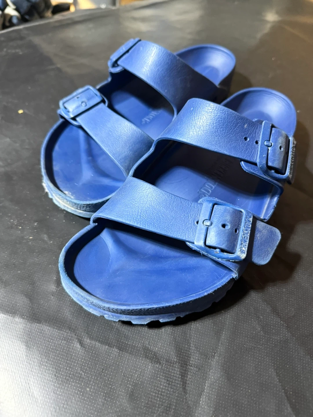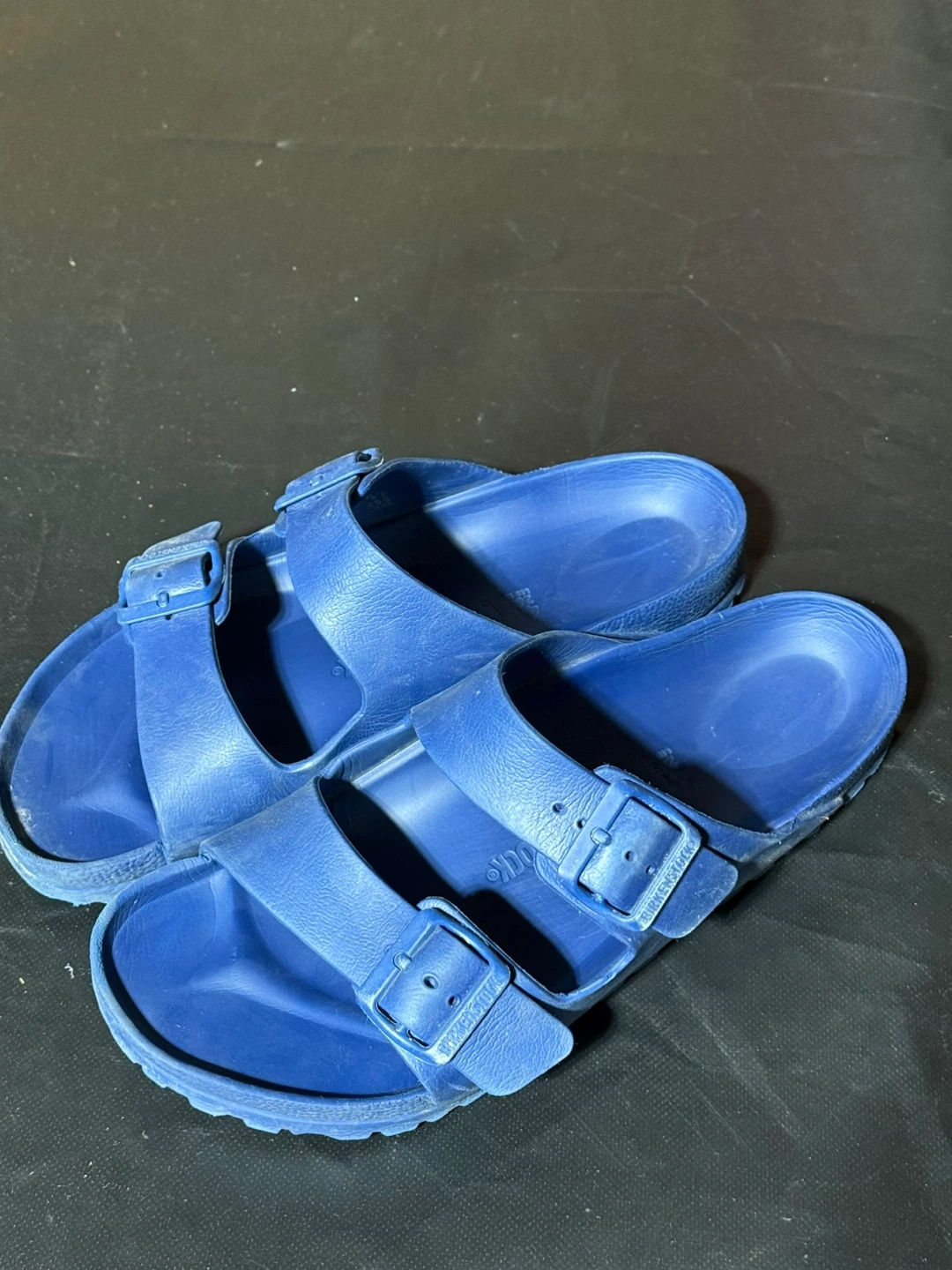 Blue Birkenstock Arizona EVA. Made in Germany. Size is 41, which is 26.5 cm or US Men's 8-8.5 / Women's 10-10.5.