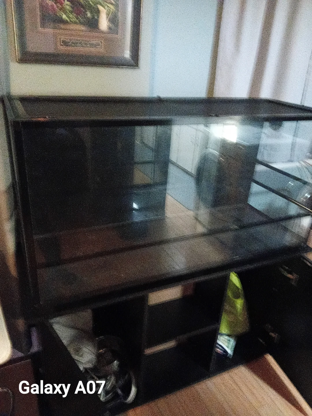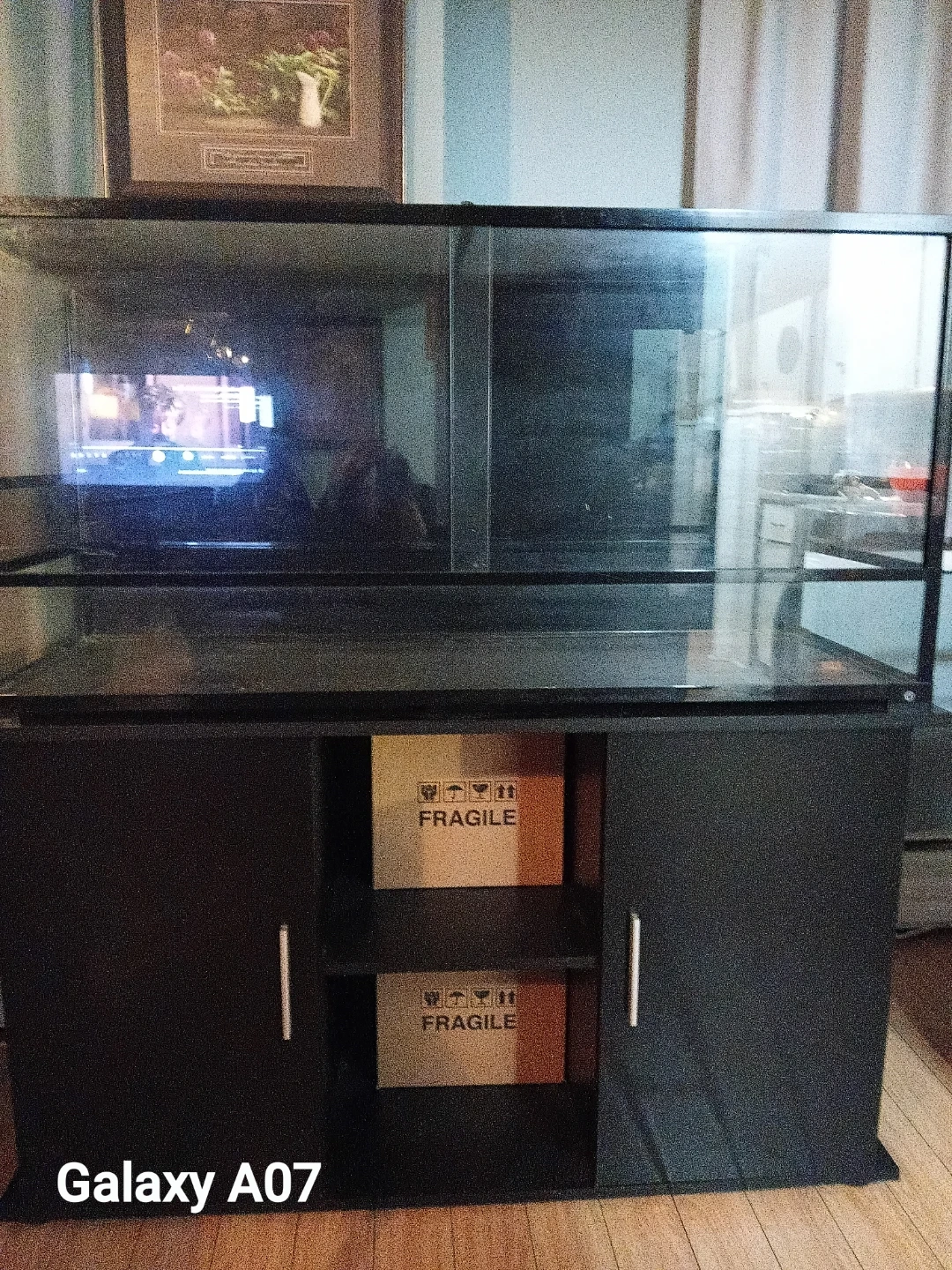 it was used for three months, its in mint condition, if its for a reptile , I also have , lights feeding dishes and furniture and uch more i payed 1 thousand for this àat big alls aquarium , i will throw the accessorise in with the full price sale of 750, without them the price is somewhat negotiable.