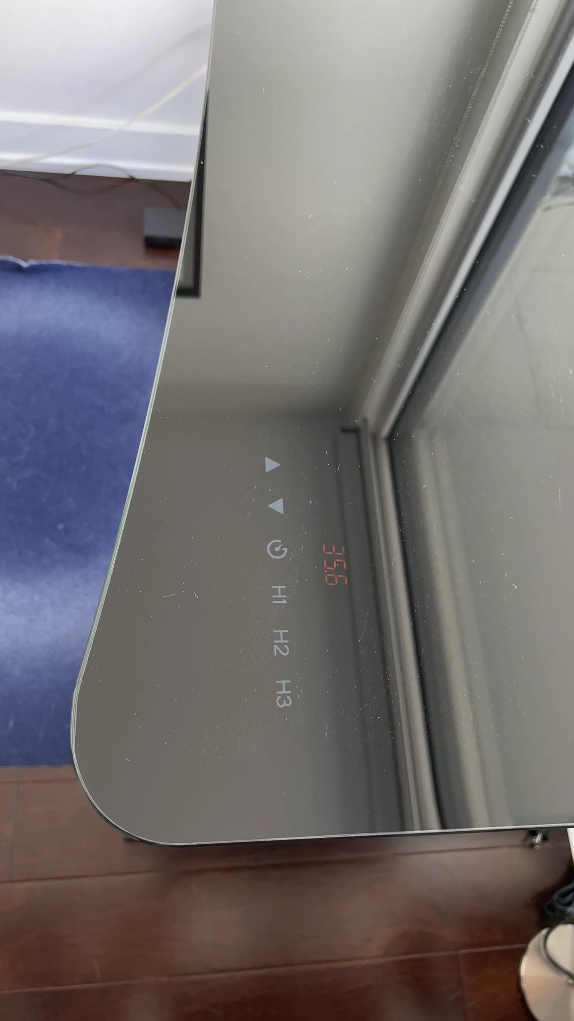 There is a little screen just to be able to see the current height under the glass as well.