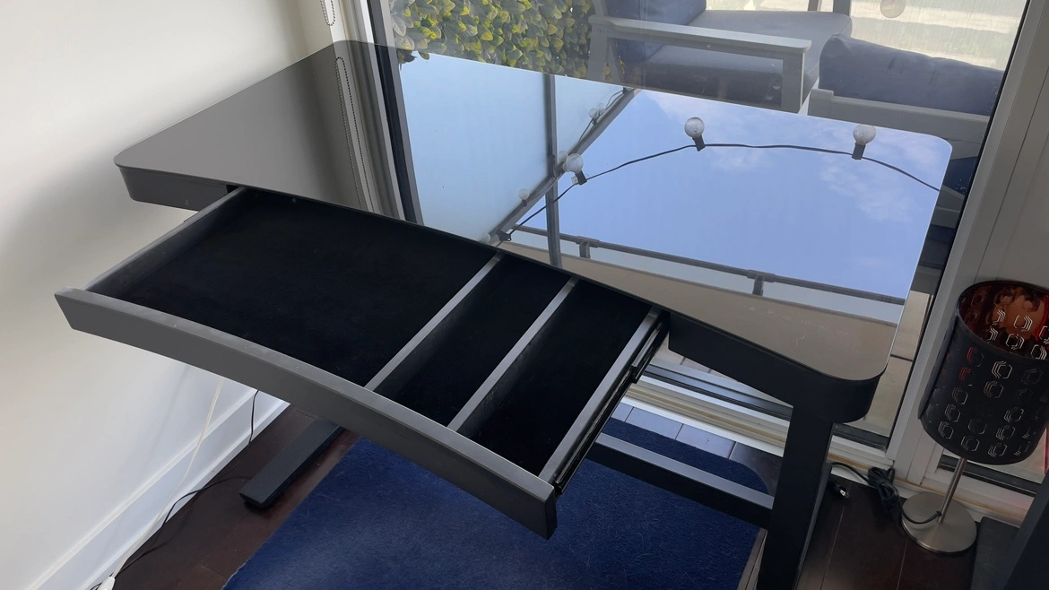 A decent size drawer with felt padding is also sitting under the glass for all your need of storage.