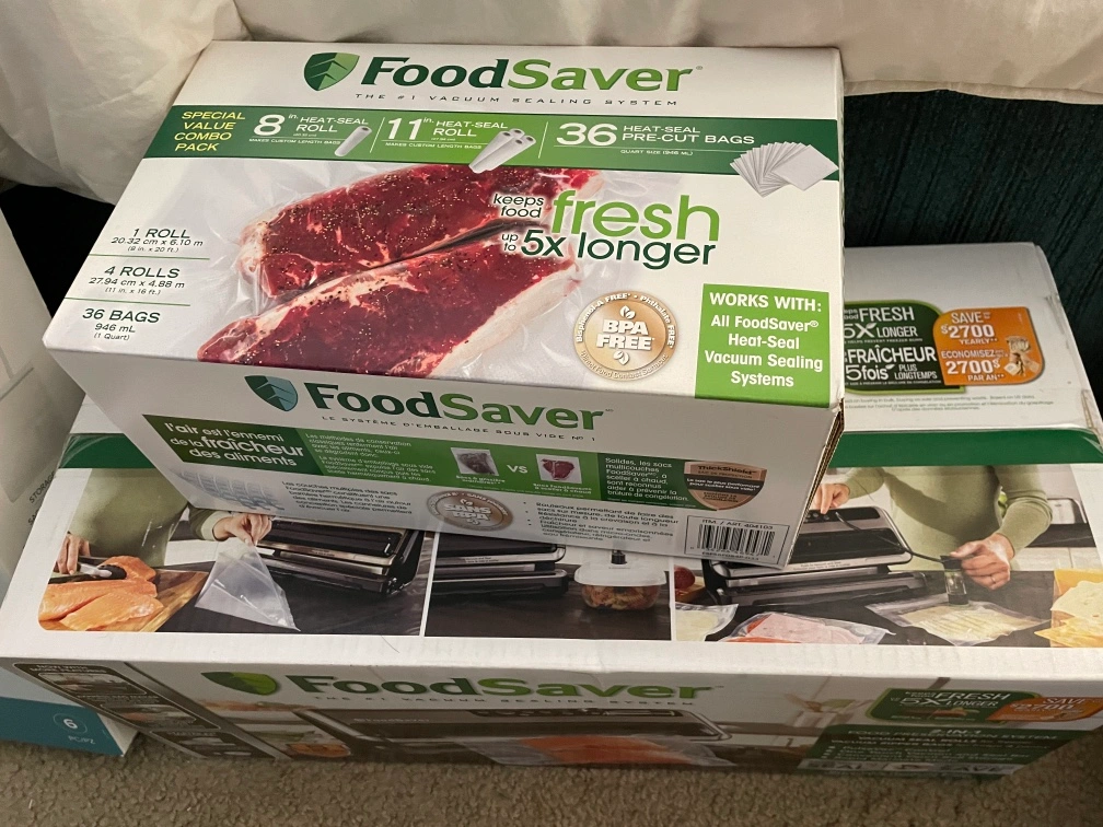 2 in 1 Food Preservation System includes Starter Kit + Special Value Combo Sealer Pack with 8 inch & 11 inch heat seal rolls. All new never opened.