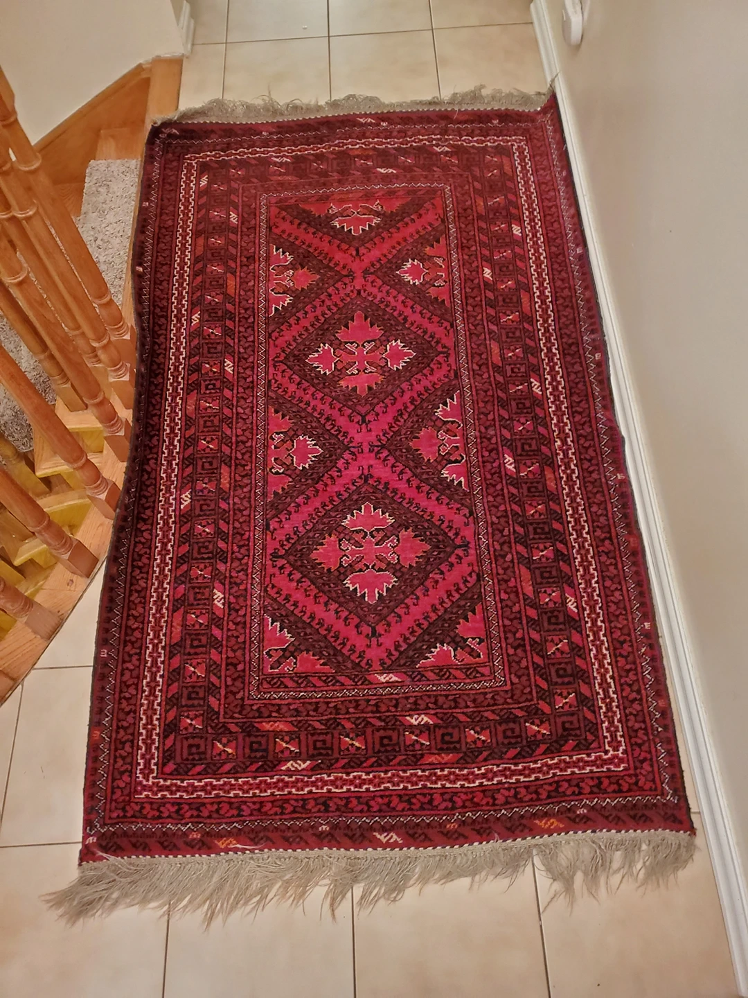 Beautiful hand crafted red Persian carpet sets right at your home good condition fits in any small place length is 187 CM width is 107 CM CM stands for centimeters