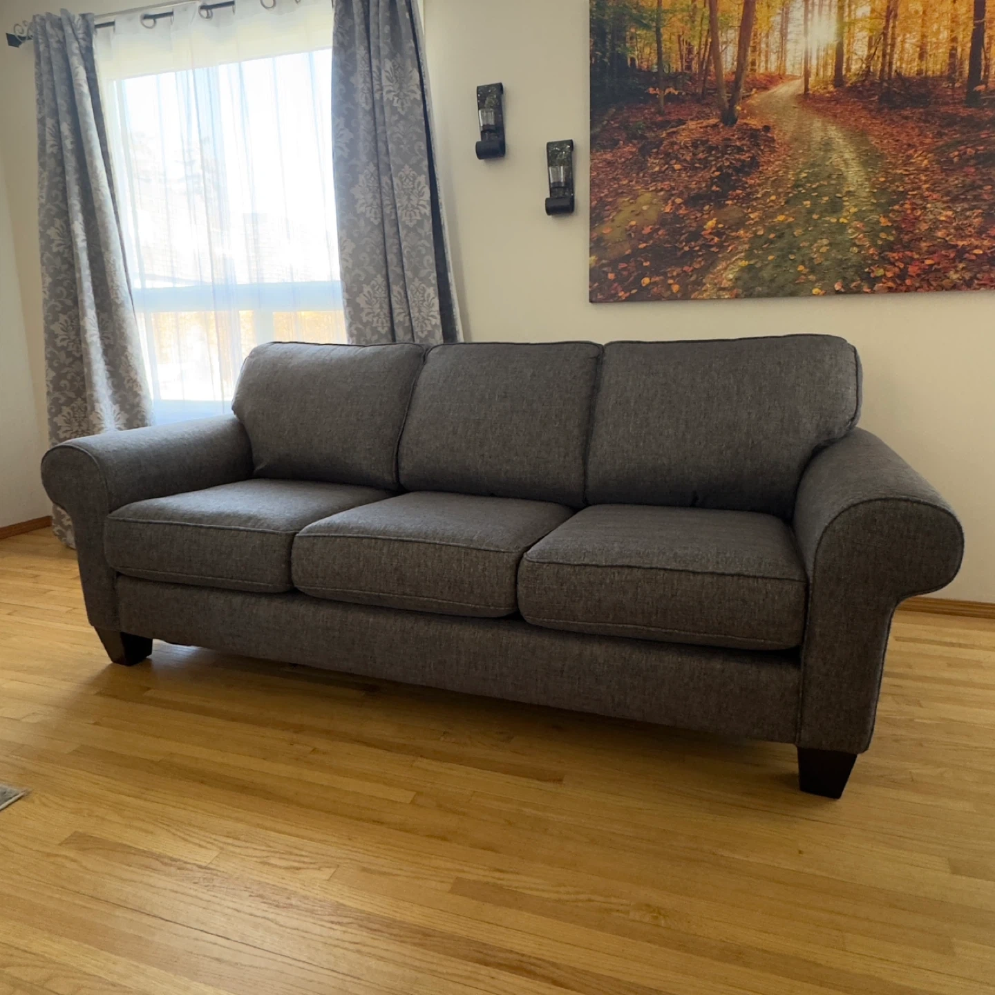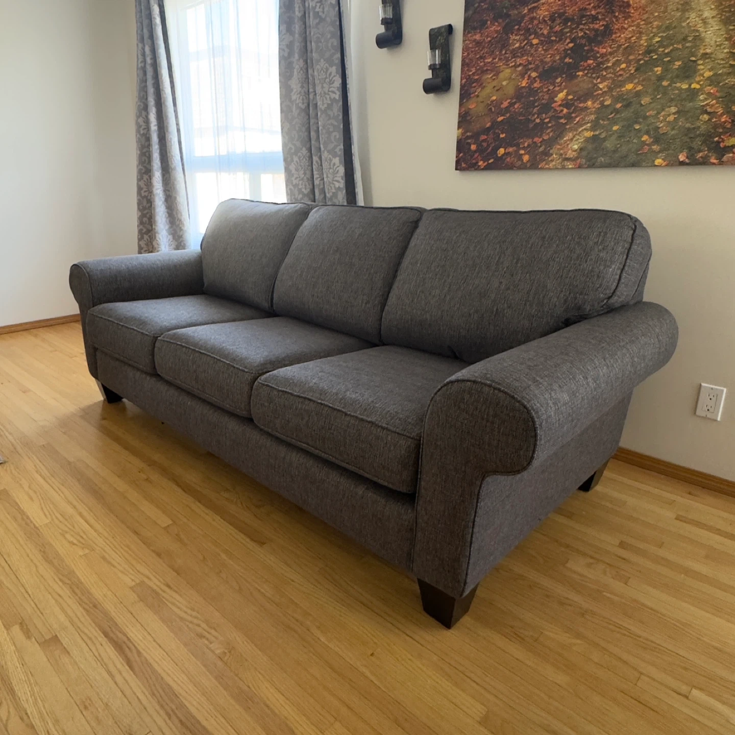 10Aside from a couple of small tears to the fabric on the underside of the sofa from moving, its in excellent, like-new condition with an included sofa cover. Shipping offered for an additional $50 ๐๏ธ Dimensions: 89" L x 39" D x 39" H Weight: 100lb