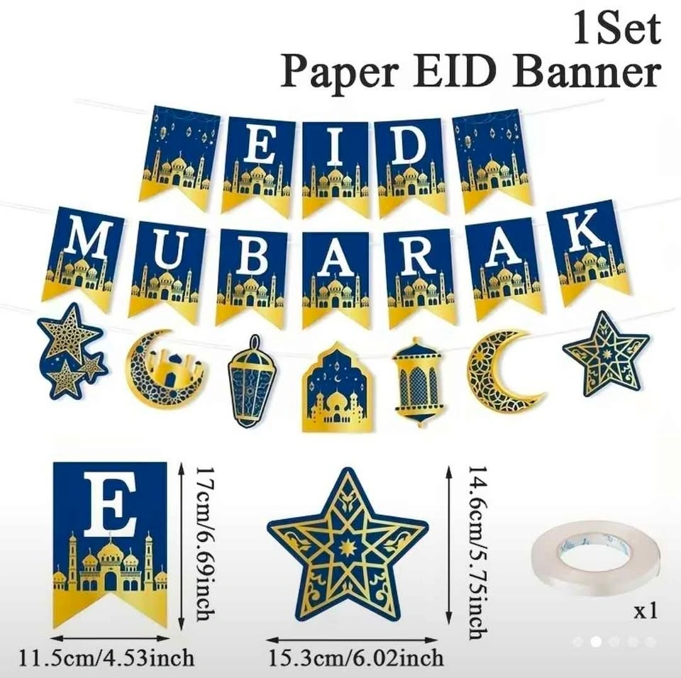 Brand new Eid Mubarak decoration set in beautiful blue and gold colors. Includes 2 banner strings: βEID MUBARAKβ pennant flag banner with mosque design and a decorative garland with stars, moon, lantern, and mosque cutouts. Perfect for Ramadan or Eid celebrations, home decor, or party setup. Price: $15. Pickup: Brock Road & Pickering Parkway, Pickering (L1V area). Cash only.