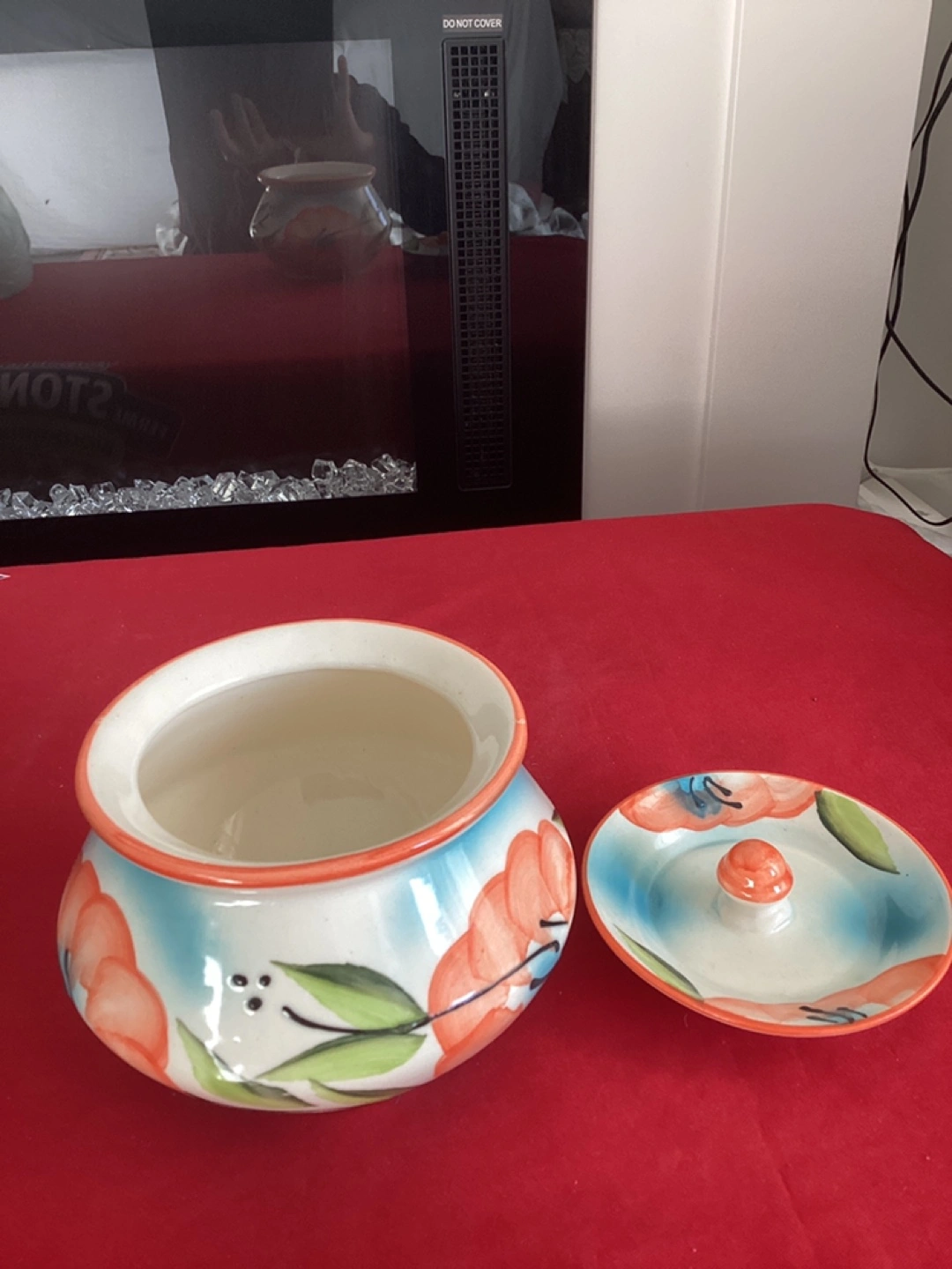Ceramic jar with lid. Hand-painted with floral design. Brand new