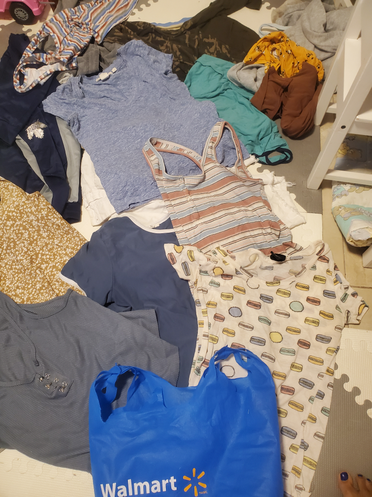 I have kind of like a surprise bag 😄 of random ladies tops and some men's tops and bottoms. sizes are mostly size large.There's at least 12 items!