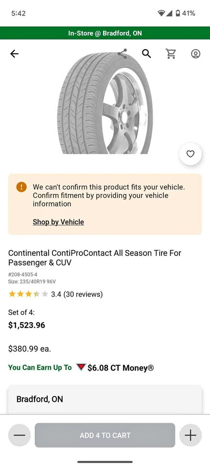 10235/40R19 Continental ContiProContact All Season Tire. Under 1000 km of driving on this tire. DOT 2023