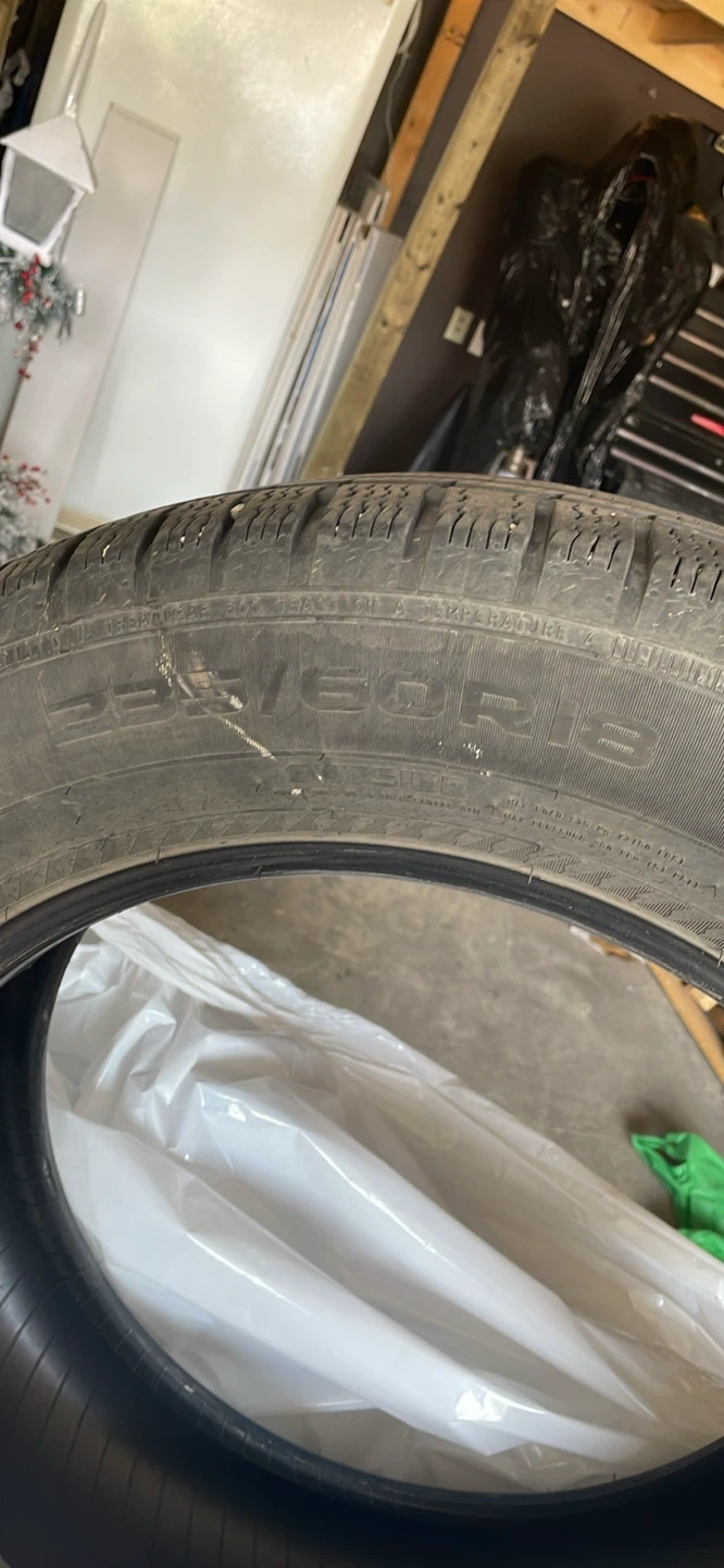 15Selling a used tires - four (4), size 235/60R18. It's an all-weather. Please check the photos for tread depth and overall condition