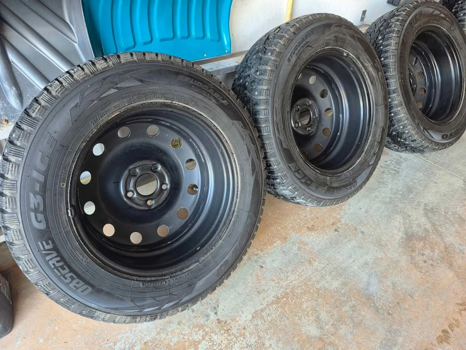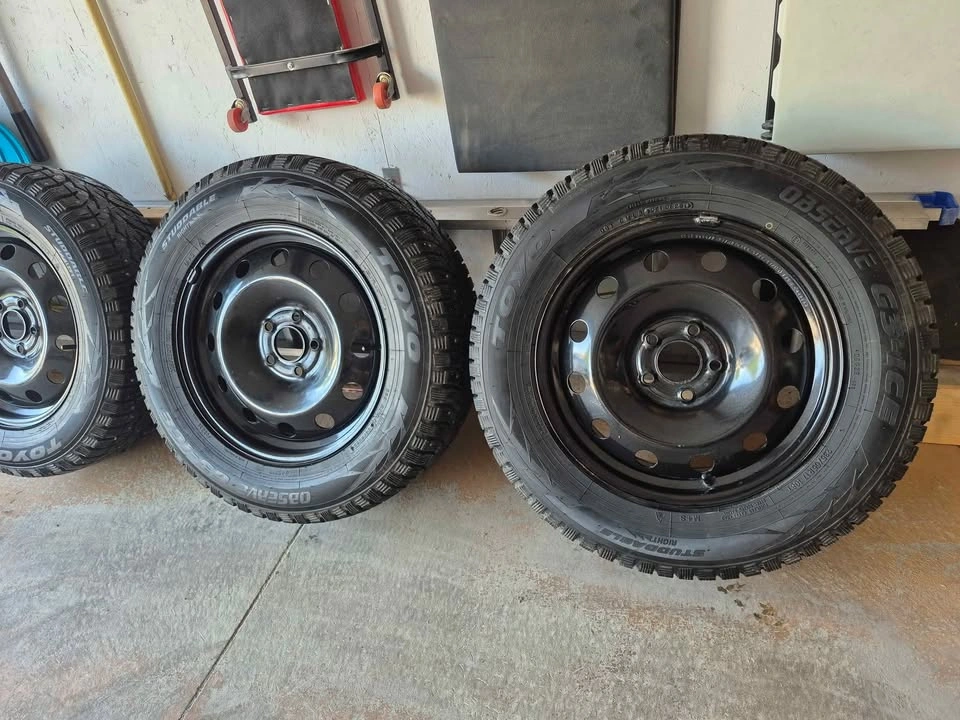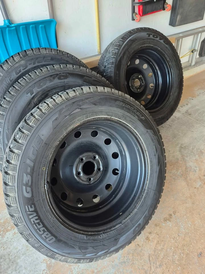 10For sale: 235/65R17 observed G3 Ice, Toyo Winter Tires – lightly used for only 2 seasons. Comes with steel rims and a Tire Pressure Monitoring System (TPMS) to monitor tire pressure. Wheel Bolt Pattern: • Center Bore / Hub Bore: 67.1 mm • Bolt Pattern (PCD): 5x114.3 (5x4.5) • Wheel Fasteners: Lug nuts • Thread Size: M12 x 1.5 ●235/65R17 104H. 7Jx17 ET48.5 OFFSET RANGE 46.5 - 50.5 Previously used on a 2023 Hyundai Tucson Preferred; originally from Hyundai dealership. Excellent condition, ready to handle any winter roads! $1000 or best offer