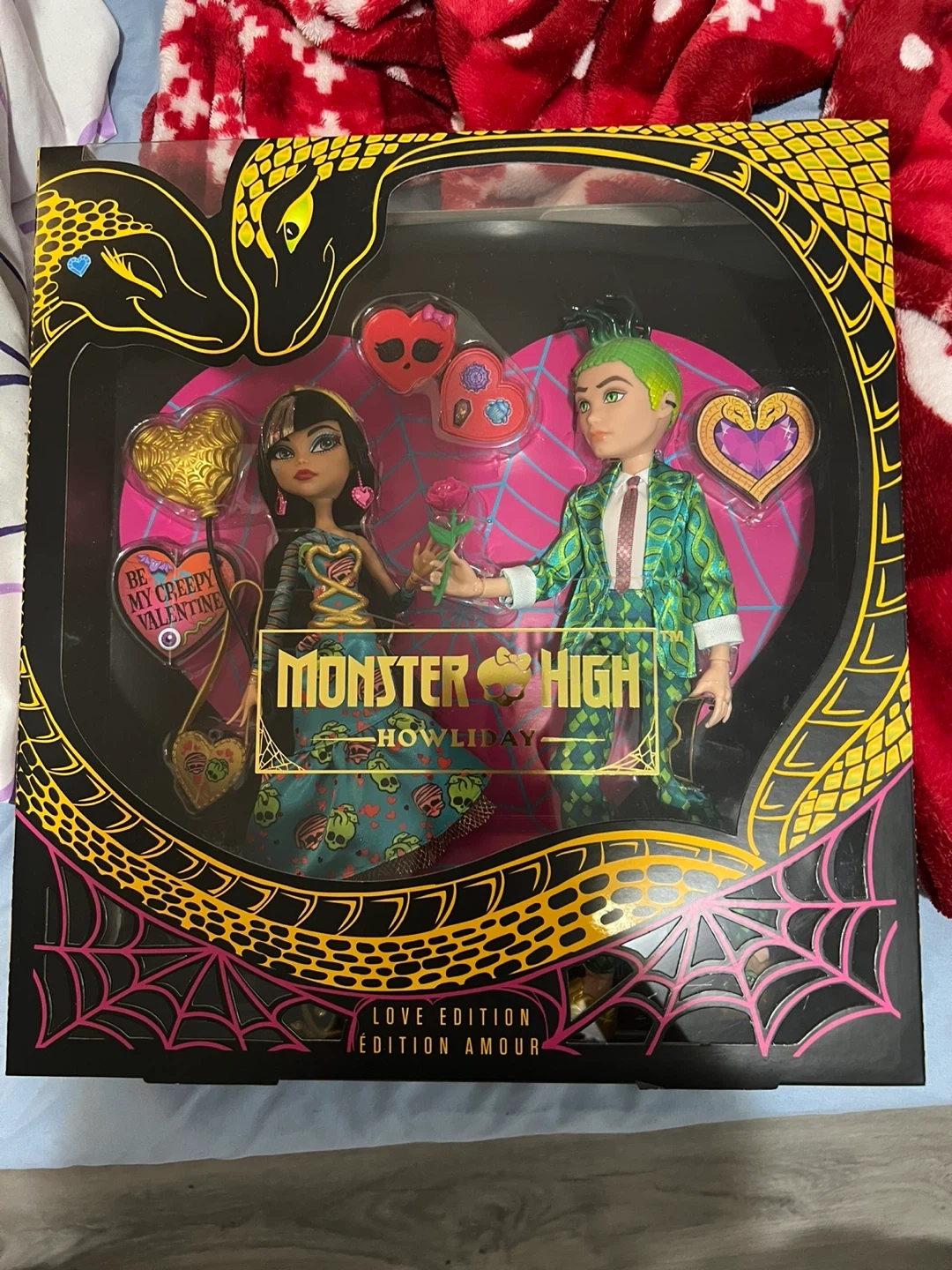This Monster High Howliday Love Edition set features dolls dressed in their finest attire. The set includes two dolls and is presented in its original packaging. Perfect for collectors and fans of the Monster High series!