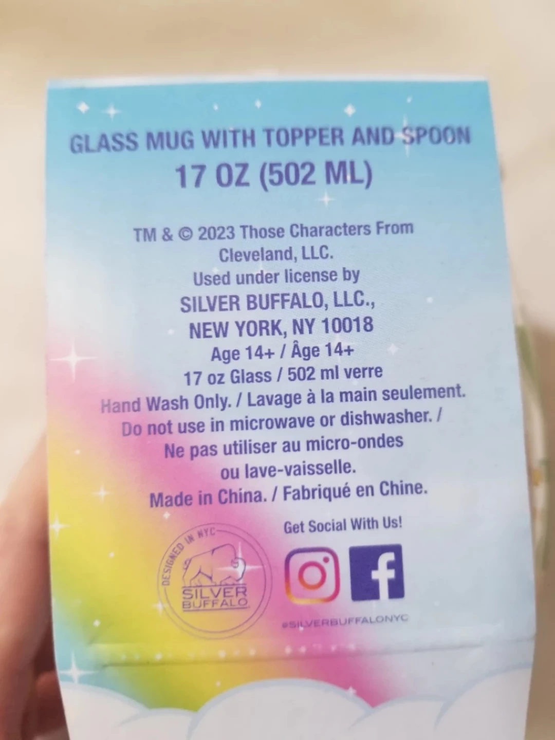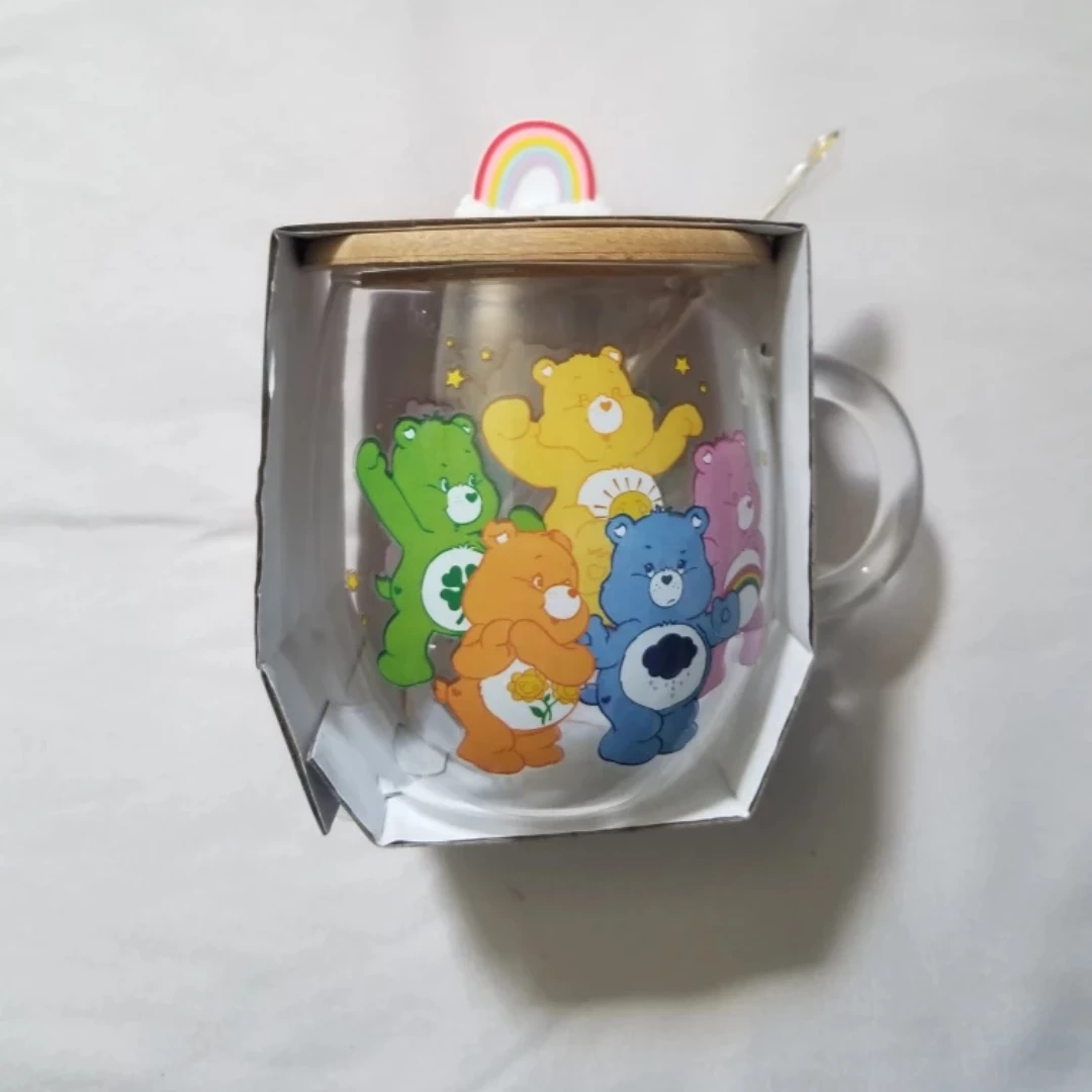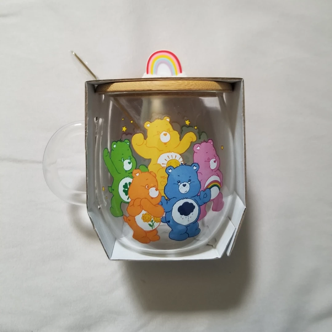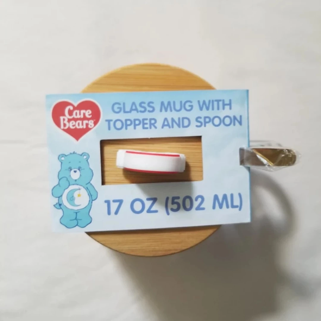 NEW in packaging! 17oz glass mug with lid and spoon.