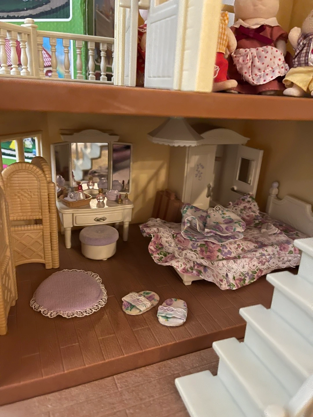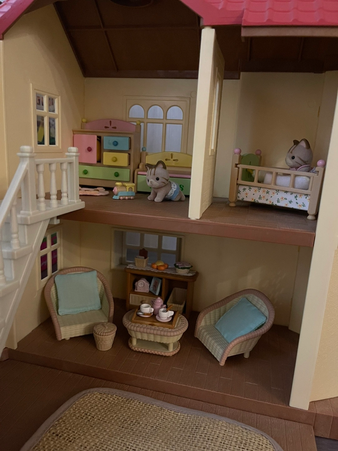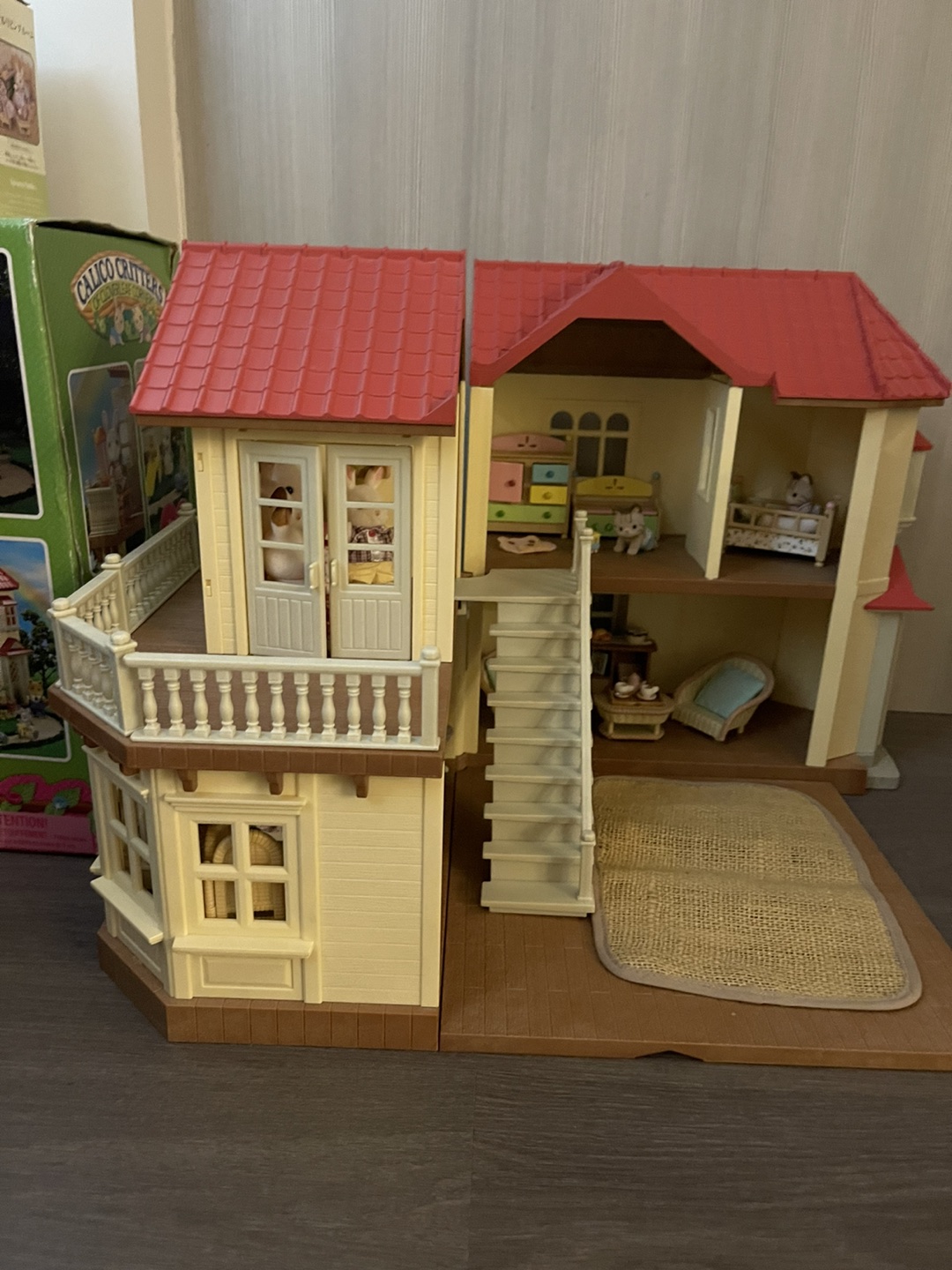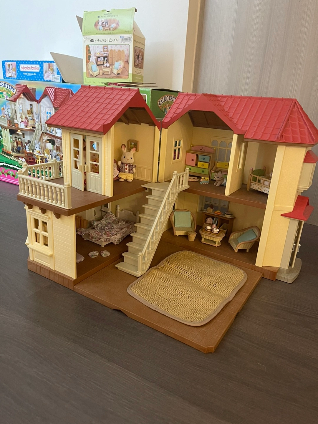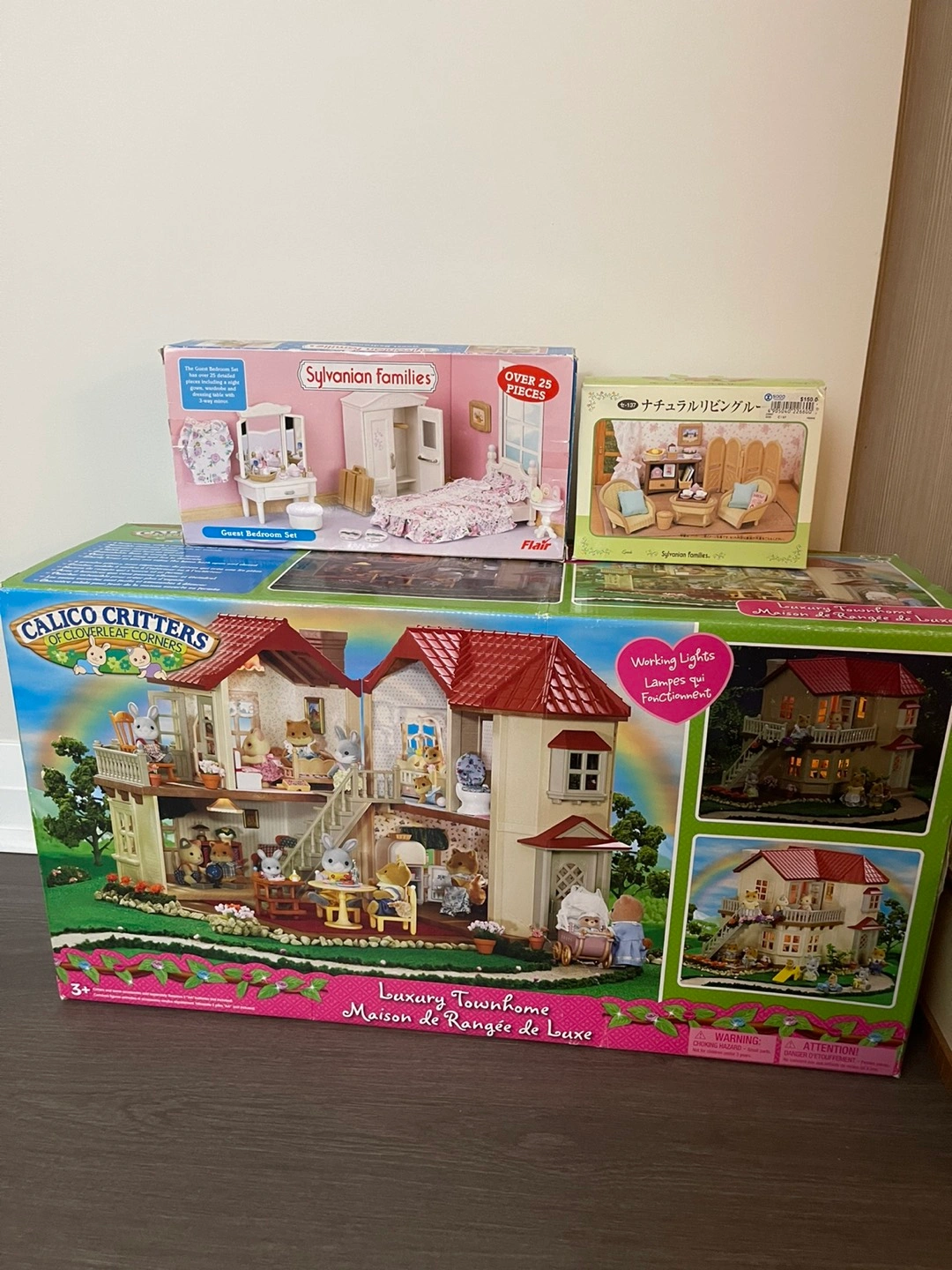 Calico Critters House with box Sylvanian families bedroom set with box Sylvanian families sitting room set with box 1 basket is missing Calico Critters baby set All of the above for $100