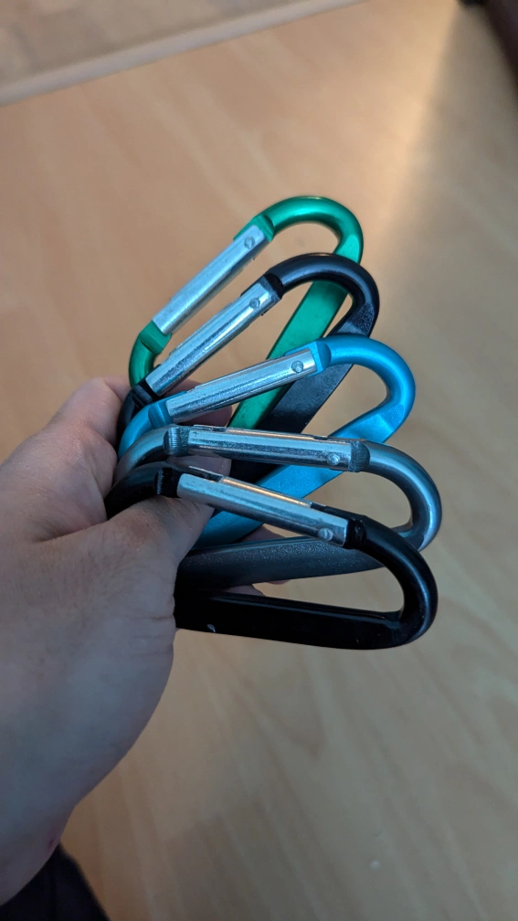 Bought a package of carabiners that come with keyrings for a backpacking trip and didn't end up using them. Selling up to 10 in various colors for $1.5 each. Can give a discount if you want more than 1.