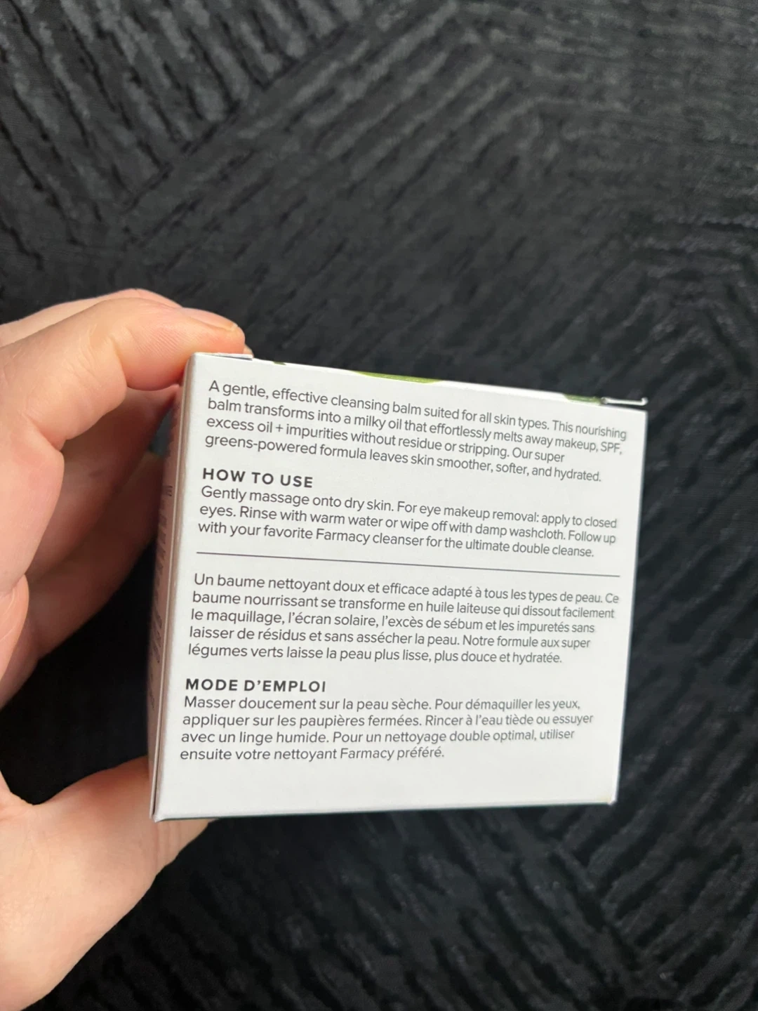 This is a Farmacy Green Clean cleansing balm with a super greens blend. It's a 100ml (3.4 fl. oz.) product. This balm transforms into a milky oil that melts away makeup, SPF, and impurities without stripping.