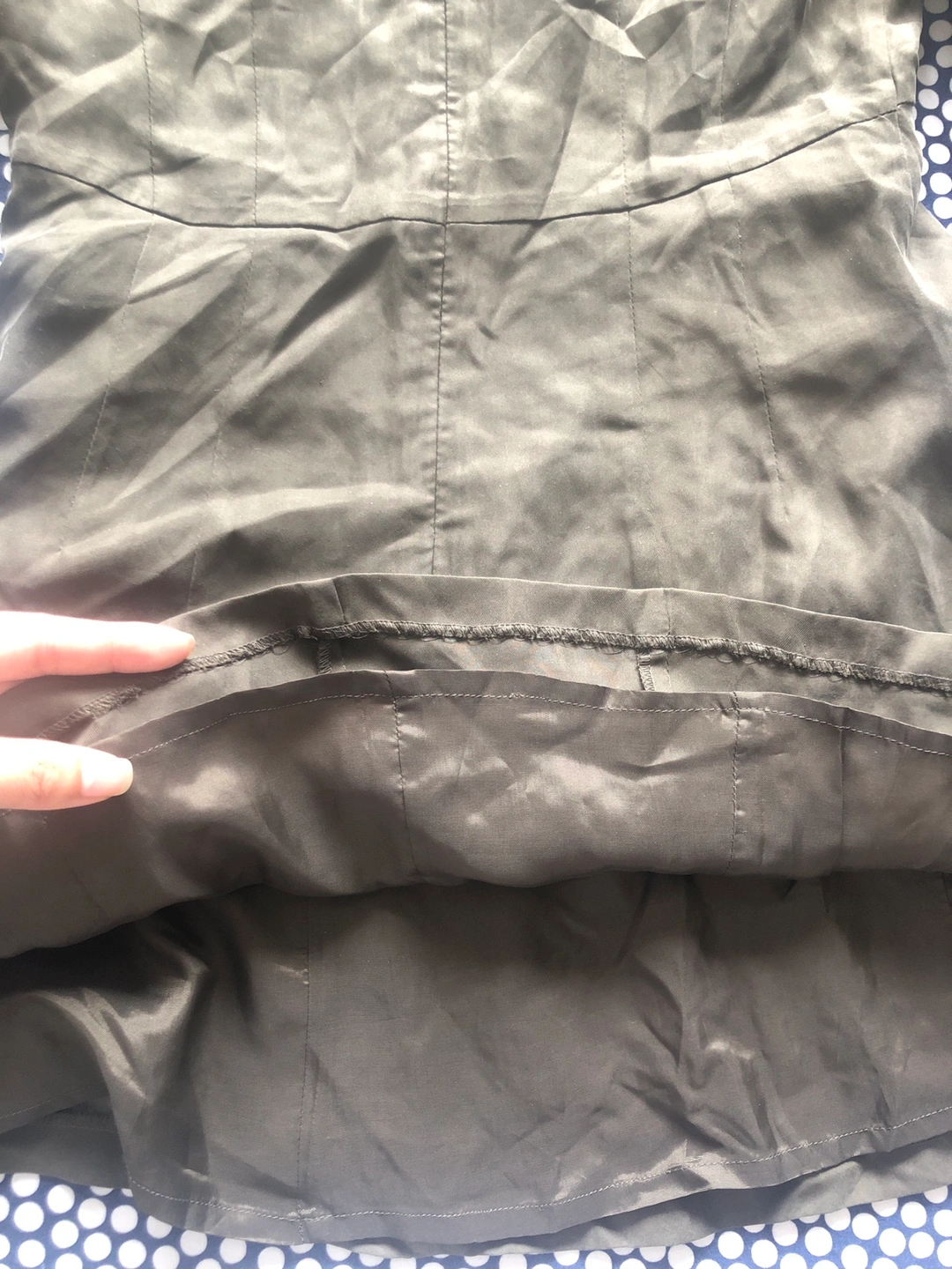Beaded front design with puffy sleeves that have cut outs, invisible zipper at the back and is double lined.