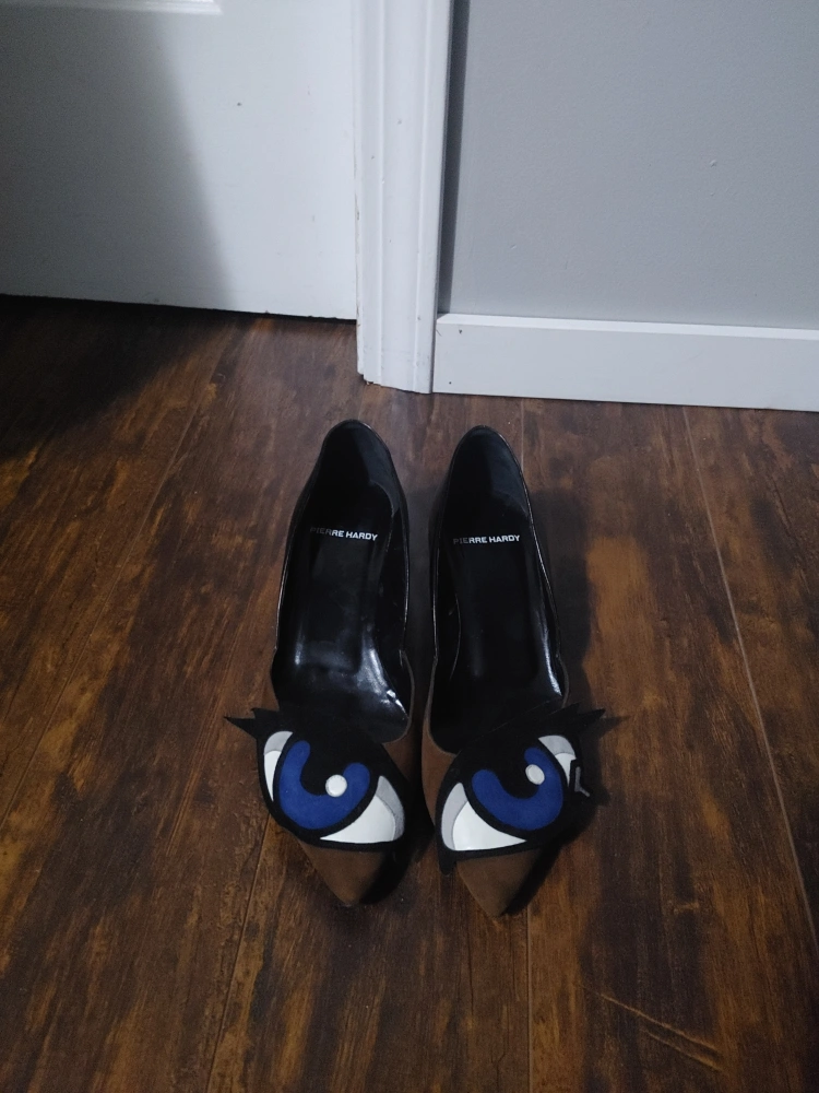 There is wear on the bottom of the shoe but the leather and suede on the top of shoe is in near perfect condition. Genuine leather made in italy. Pierre Hardy shoes are a luxury shoe. The eyeball " i want " collection was released in 2014. I purchased these for $250 at a consignment boutique.
