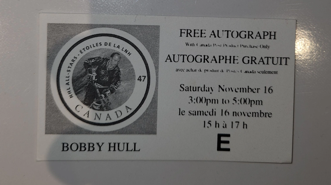 NHL Legend Bobby Hull Autographed Limited Edition Canada Post Lithograph. What you see is what you will receive. Excellent condition. 2nd photo is the event stub from the signing.