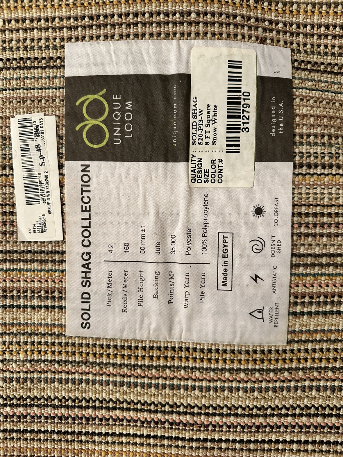 338 x 8 sq ft Unique Loom Solid Shag Collection Square Rug Smoke free & pet free For more details: https://rugs.ca/pure-ivory-8-ft-square-solid-shag-area-rug-33127803?click_source=pdp_color_swatch Pick-up only, False Creek area