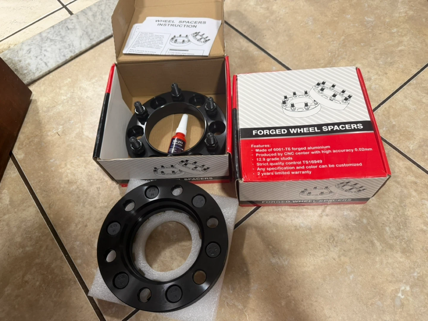 Set of KSP forged wheel spacers. Made of 6061-T6 aluminum. CNC machined for high accuracy. Includes studs. Any specification and color can be customized.