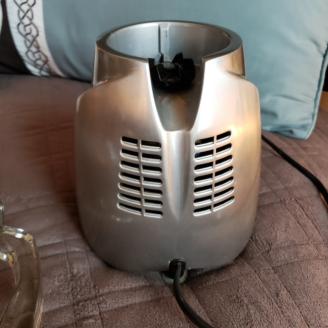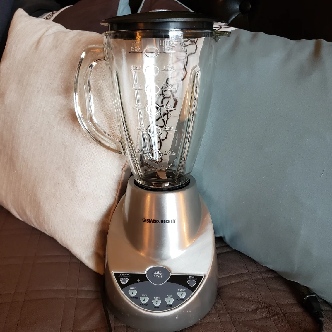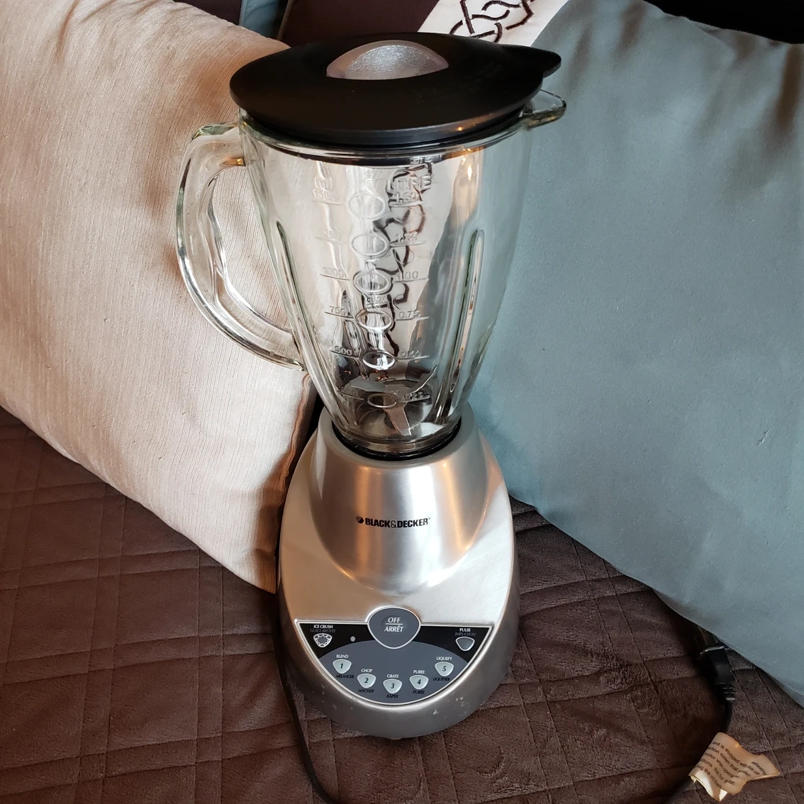 Its a steal for just 15 bucks, but its been used for a while. Always cleaned well, works great, and is a good size!! You can make huge smoothies, aha.