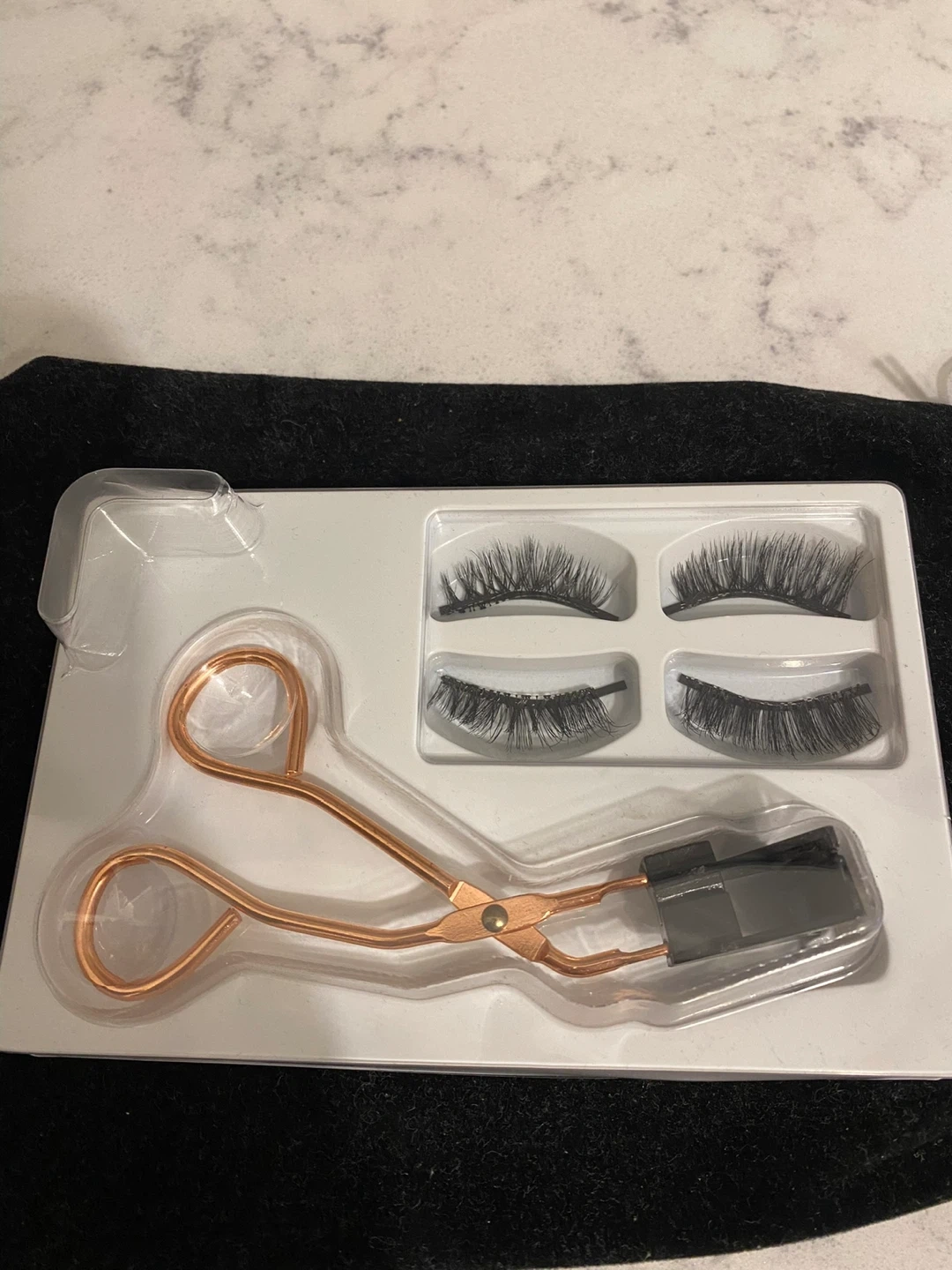 Includes magnetic false eyelashes and a rose gold applicator tool. These lashes are designed for easy application without glue. The applicator helps in precise placement for a natural look. Great for achieving a fuller lash appearance quickly!
