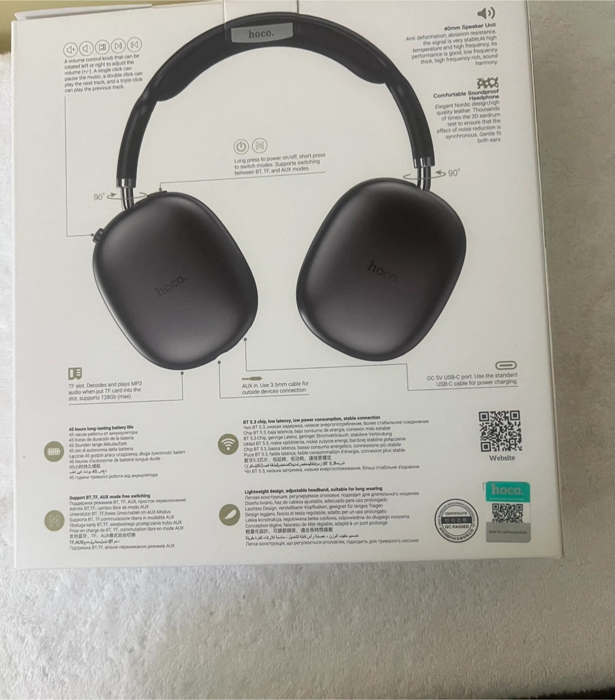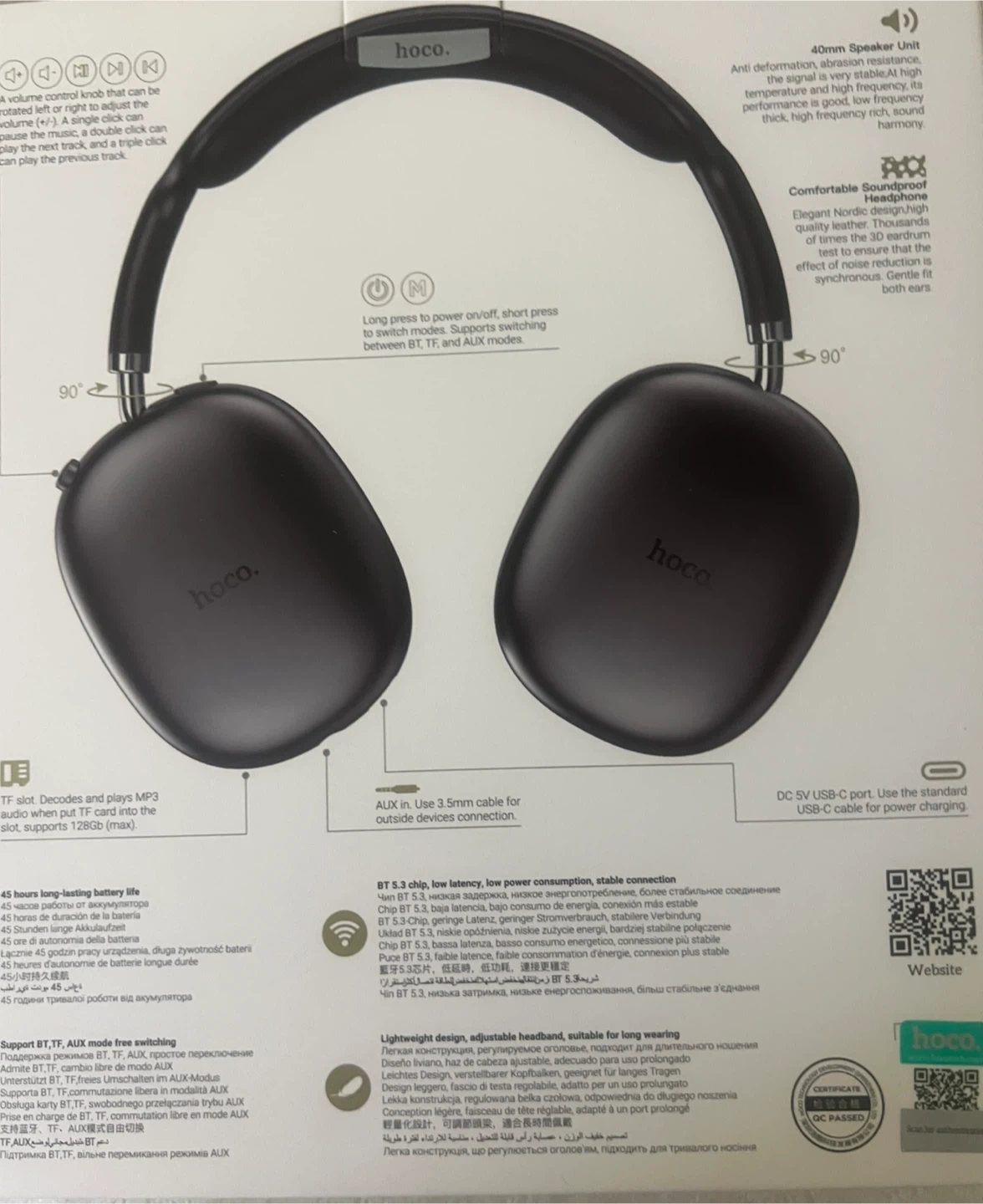 This New Hoco W35 Air headphones offer 45 hours of long usage time. They feature Bluetooth 5.3 for a stable connection. Lightweight design, adjustable headband for comfortable long wear.