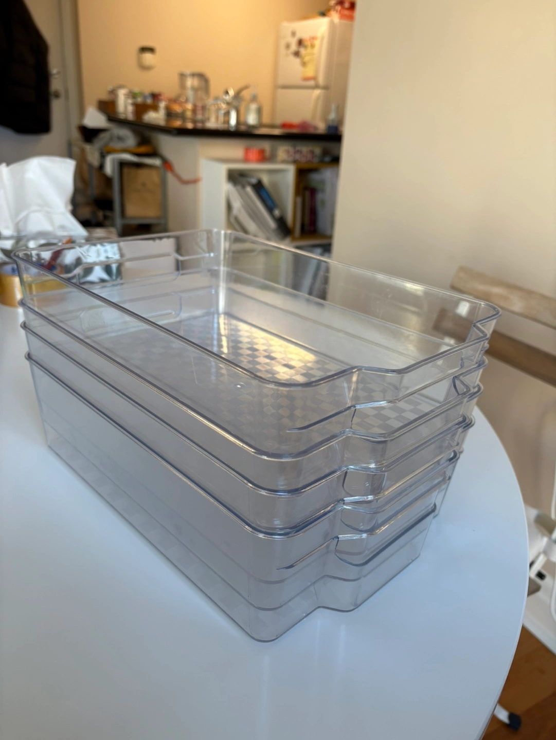 Set of four clear plastic refrigerator bins