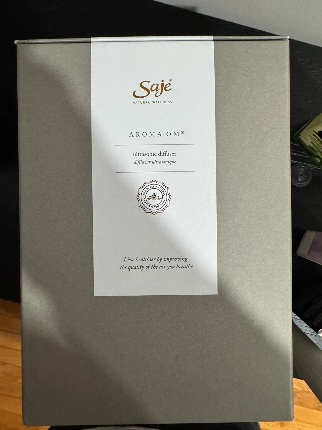 This Saje Aroma Om ultrasonic diffuser comes with a power cord and is in its original box. Includes a collection of four 5ml essential oil blends: After the Rain, Into the Trees, Liquid Sunshine, and Refresh. Also includes a bottle of Lavender essential oil (9ml) and a bottle of Peppermint essential oil (5ml). When would someone use this? For creating a pleasant atmosphere at home or work.